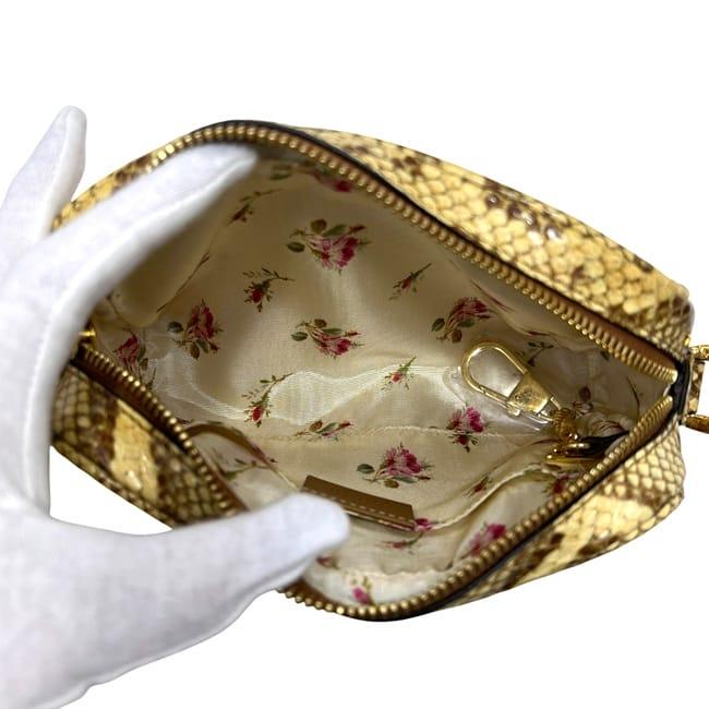 ☆---- 商品について ----☆グッチ ショルダーバッグ ec-24994 ベージュ GGマーモント 574493 美品 パイソン ストロー 中古 493075 GUCCI ファスナー GG 斜め掛け クロスボディ 蛇皮 ヘビ ミニバッグ ポシェット 裏地花柄 レディース 女性 定番 人気 ゴールド金具 ブランド 本物 鑑定済み