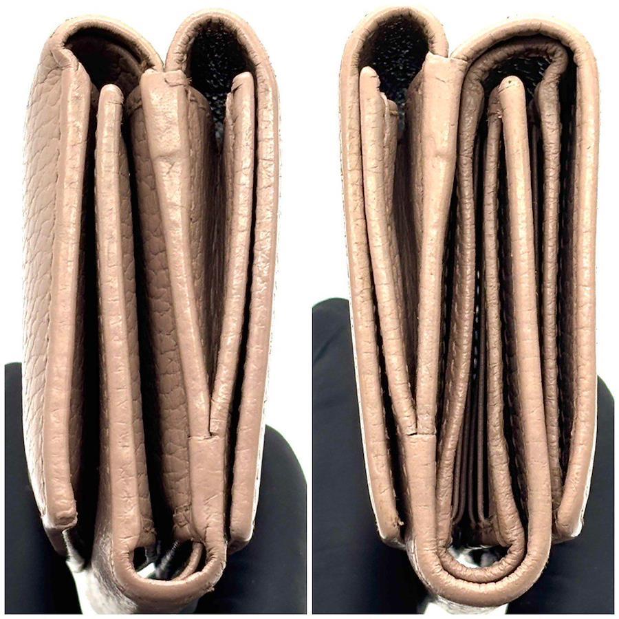【商品説明】・やわらかなピンクベージュが手元を優しく彩る、GUCCIのGGマーモント三つ折り財布。上質なシボ感レザーに、ゴールドのダブルGロゴが程よいアクセントとなり、甘さと品のバランスが絶妙な一品です。