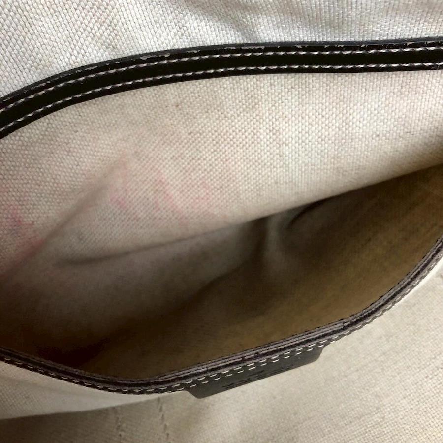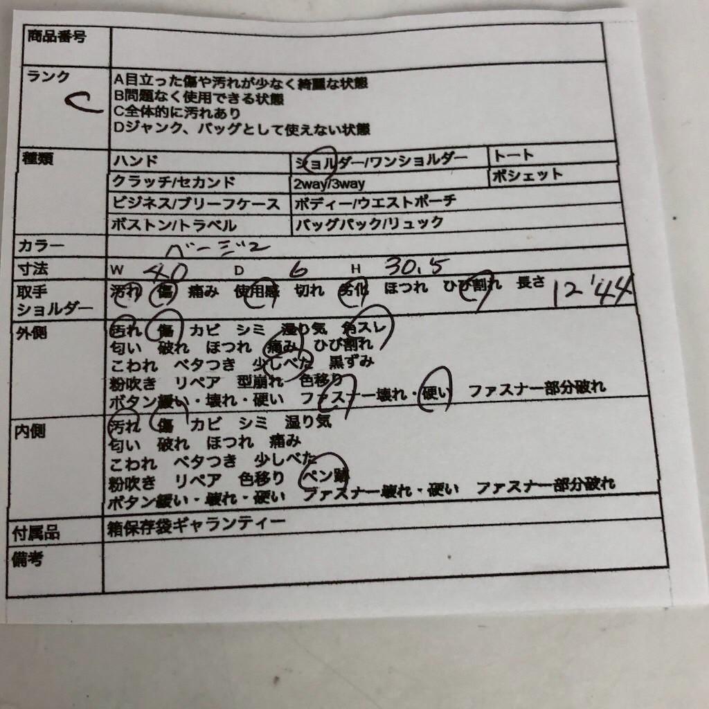 全体的に使用感あります。【外側】汚れ、傷、角スレ、痛み、少しベタ、ファスナー硬いが御座います。【内側】汚れ、傷、ペン跡が御座います。【取っ手、ショルダーストラップ】汚れ、傷、使用感、劣化、ひび割れが御座います。長さ12cm/44cm
