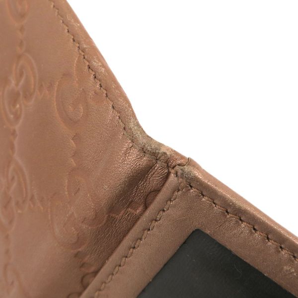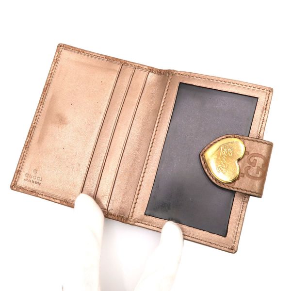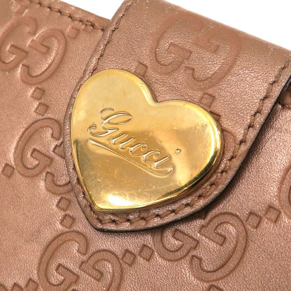 グッチ シマ・パスケースグッチからマルチで活躍できる『シマ・パスケース』のご紹介です!ベージュピンクにGG柄がエンボス加工されたグッチシマラインとなっており、グッチの金具ロゴがハートマークとなっているフェミニンな雰囲気のパスケースです!二つ折りとなっており内部と外面にカードが見えるポケットがそれぞれ備わっており、それ以外のカードポケットが4つ備わっていますので機能的なカードケースとしても◎状態はBランクとなっており、本体の型崩れ、表面の擦れ、全体的な傷、フチ部分の擦れ、内部のスレ、押し跡、金具部分の小傷がございます。使用感、全体的なダメージは感じますがそのガンガンお使いいただけますね!是非いかがでしょうか?