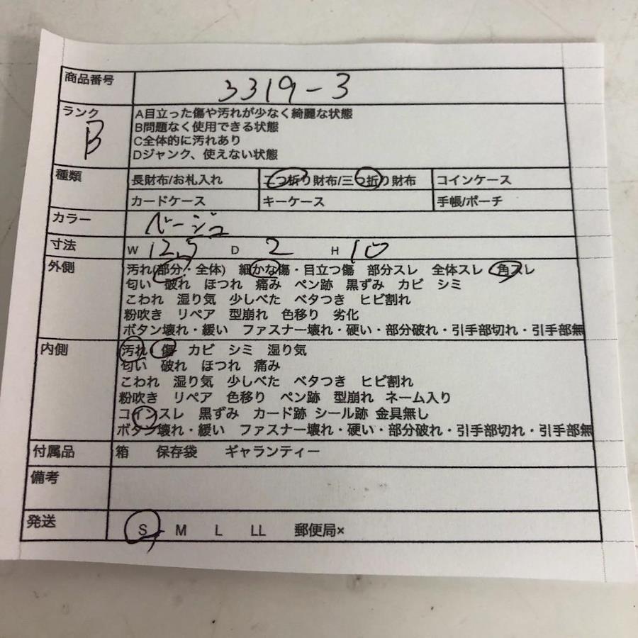 多少の使用感あります。【外側】部分的な汚れ、細かな傷、角スレが御座いす。【内側】汚れ、傷、コインスレが御座いす。