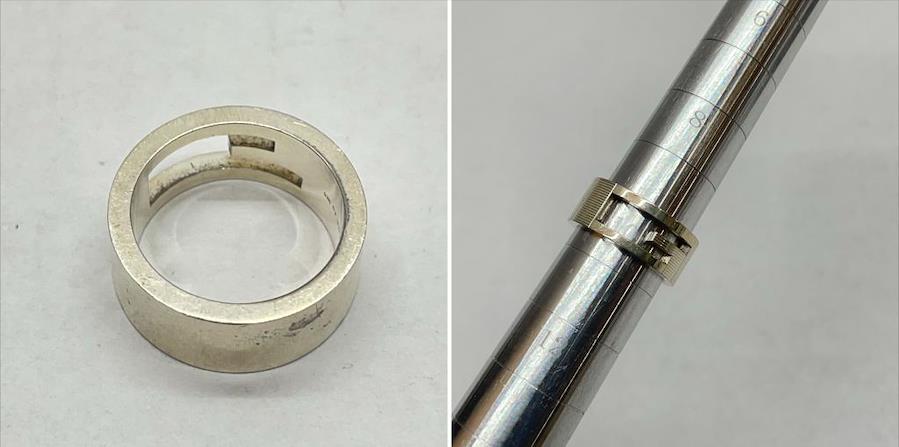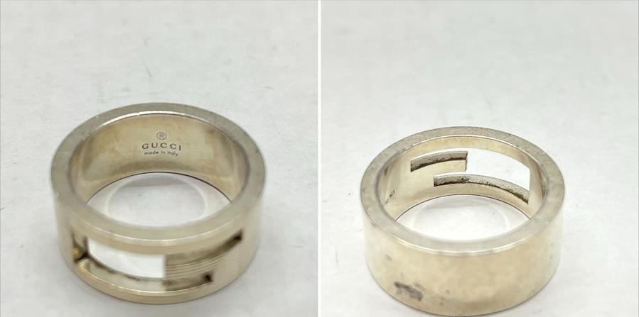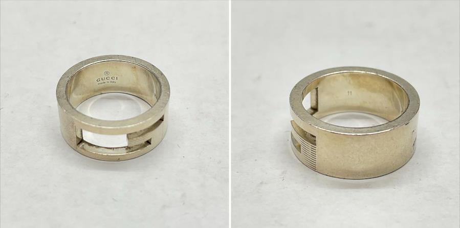 【管理番号】01w-5318【ブランド】グッチ(GUCCI)【対象】ユニセックス【生産国】イタリア【サイズ】ケース:約mmリング幅:約7mmリング内径:約16mm内周約50mm // 記載サイズは11でしたが計測棒で測ったところ約10号くらいでした。【付属品】なし■コンディション・状態【状態ランク】B※店舗併売のお品物になります。店頭にて販売が成立した際はお取引をキャンセルさせていただく場合がございます。