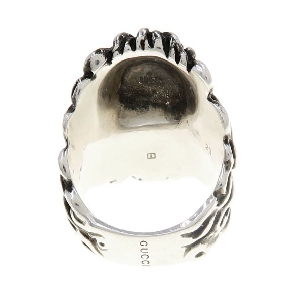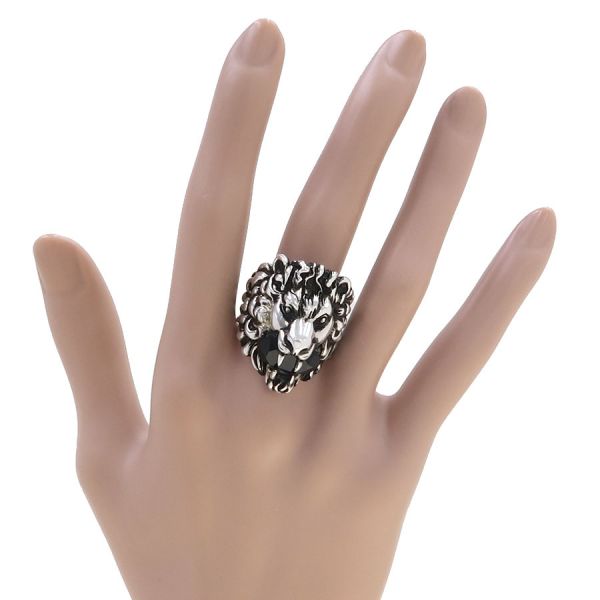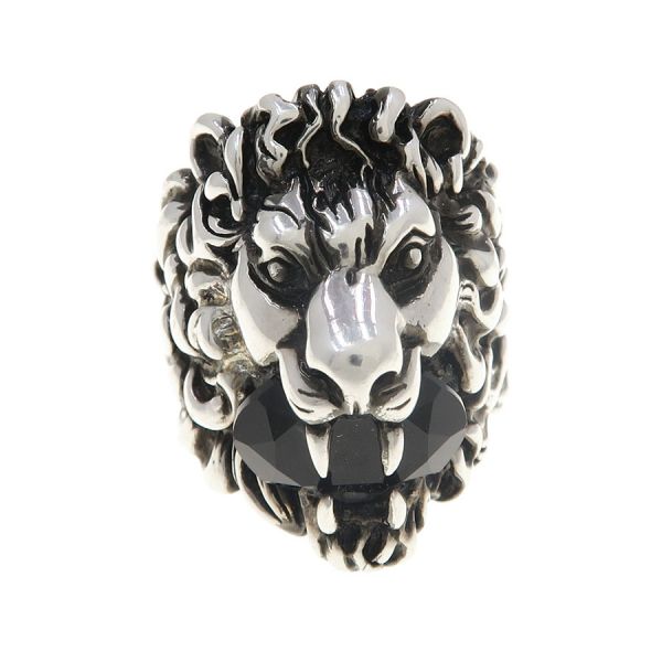 ■採寸#23 日本サイズ:約21.5号 幅:0.7~3.4cm モチーフ:約3.4×2cm■素材表記なし■コメントグッチからライオンヘッドリングが入荷しました!ブラックのストーンを咥えた、ライオンの顔モチーフがインパクト抜群な一品です☆全体に若干のスレキズやストーン等のくすみ、リング内側顔の後ろ部分に黒ずみが見受けられる為Bランクでのご紹介となりました。着用時に目立つダメージや汚れはなくまだまだ問題なくご着用いただけるお品となっております◎※リングは日本サイズ表記になります。