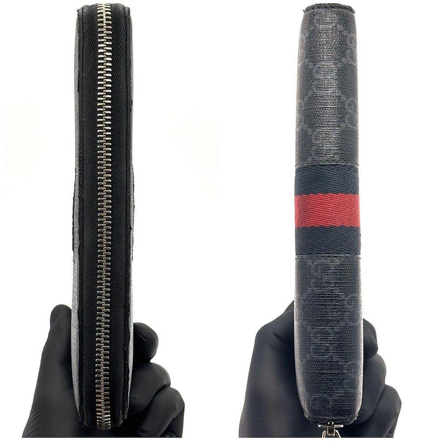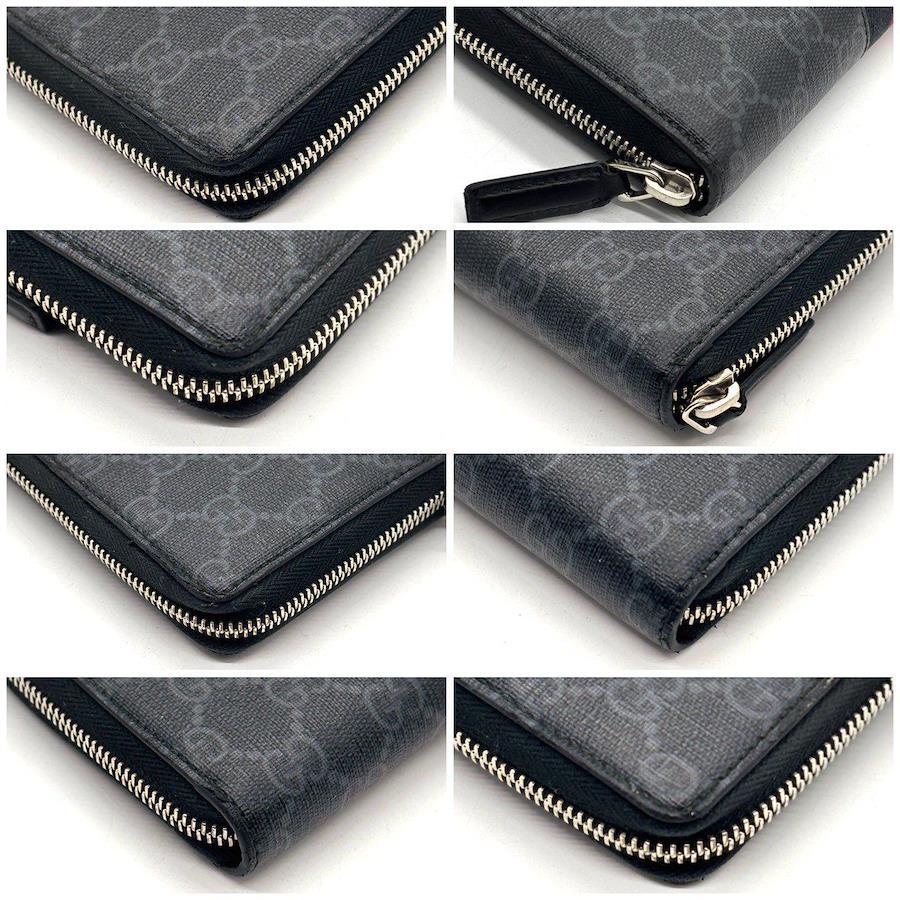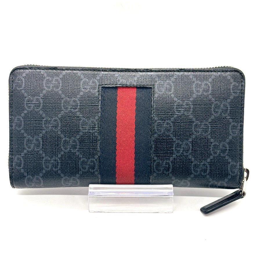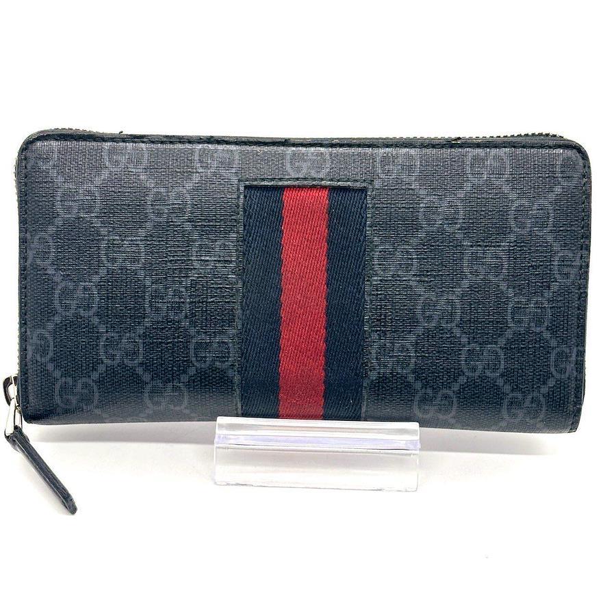 GUCCI Long Wallet, 8 Cards, Round Zipper, GG Supreme, Sherry Line, Web Series, 408831, Black