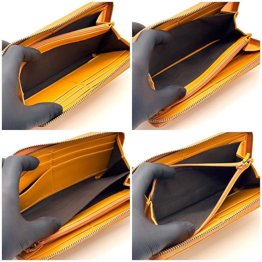 イエローカラーはバッグの中でも視認性が高く、実用性も◎。ラウンドファスナー仕様で収納力があり、カード・紙幣・小銭をすっきり整理できます。黒やブラウンに飽きた方におすすめの、品よく映える一本です。