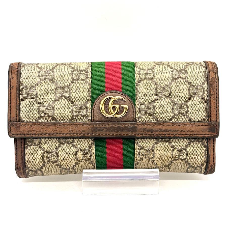 GUCCI Ophidia GG Continental GG Supreme Sherry Line Long Wallet in Beige Leather with 12 Cards