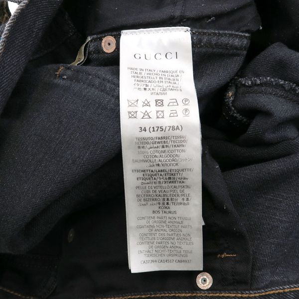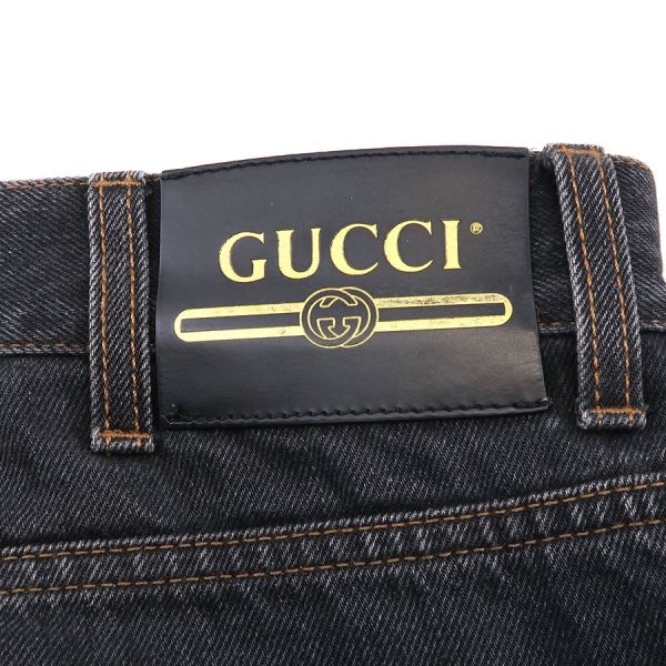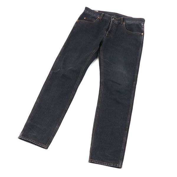 ■採寸#34 W:88cm H:108cm 股上:30cm 股下:69cm■素材表地:コットン100% ラベル部分:牛革■コメントグッチからメンズパンツが入荷しました。後ろウエストのブランドロゴラベルがオシャレなデニムパンツです☆状態は全体にデニム生地特有のスレや褪せ、前右膝にシミ汚れ等が見受けられますのでBランクでのご紹介です。目立つ汚れやダメージはないので、まだまだ問題なくご着用いただけます。