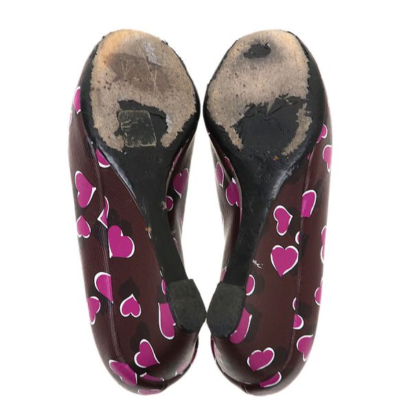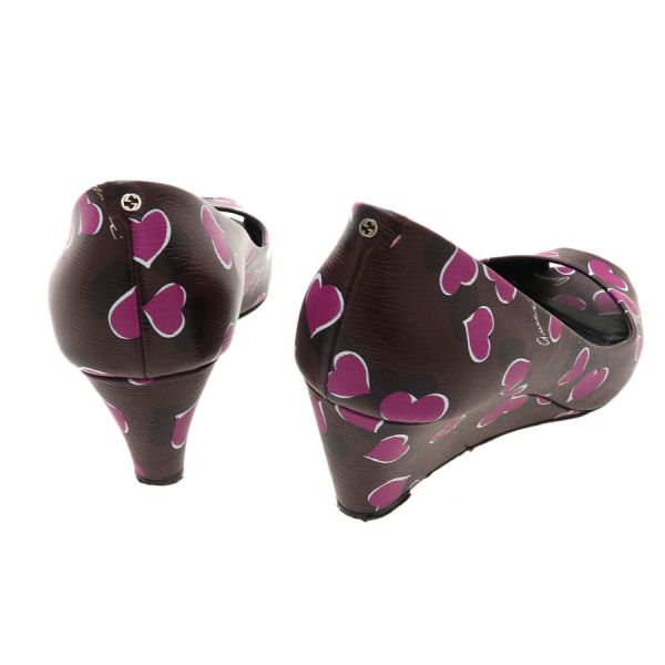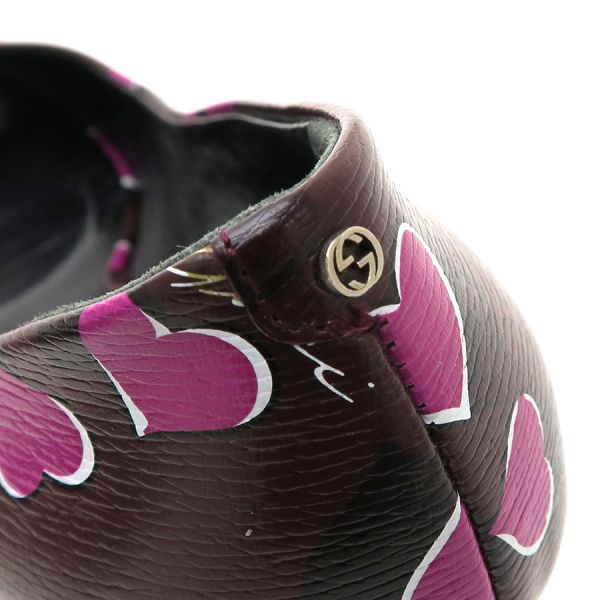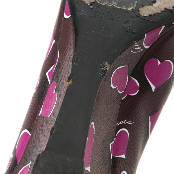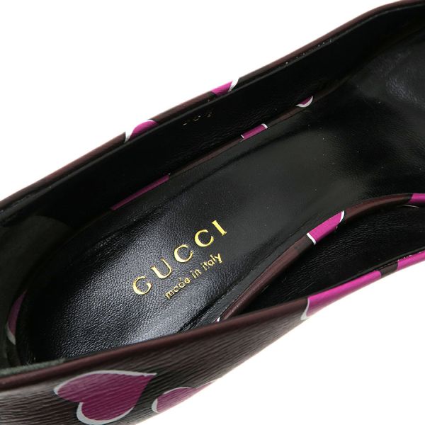 ■採寸#36 1/2 日本サイズ約23.5cm 甲幅7.2cm ヒール高さ5.5cm■素材表記なし■コメントグッチからパンプスが入荷しました!ハートの柄が可愛らしいパンプスです。右側面に赤い汚れ、右つま先付近や左甲周り、左ヒール部分、踵部分など全体の所々に白い汚れ、右底に抉れ跡、底に剥げ後やスレなどの外履きの跡がみられるためCよりのBランク評価になります。