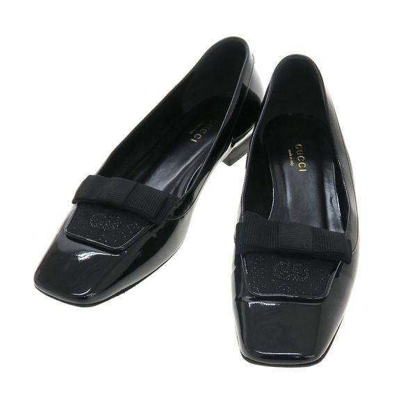 ■採寸#37 日本サイズ:約23.5cm 甲幅:約8cm ヒール高さ:1.5cm■素材表記なし■コメントグッチからパンプスが入荷しました!光沢のあるエナメルに甲のグログランリボンがクラシカルなアクセントになった一足☆リボンの下のGGロゴでさり気なくブランドアピールできるアイテムです!靴底の外履きによる汚れやダメージ、つま先や踵周りにややスレキズ、甲のリボンにややスレやくすみが見受けられる為Bランクでのご紹介となりました。着用時に目立つダメージや汚れはなく、きれいめなお品となっております◎