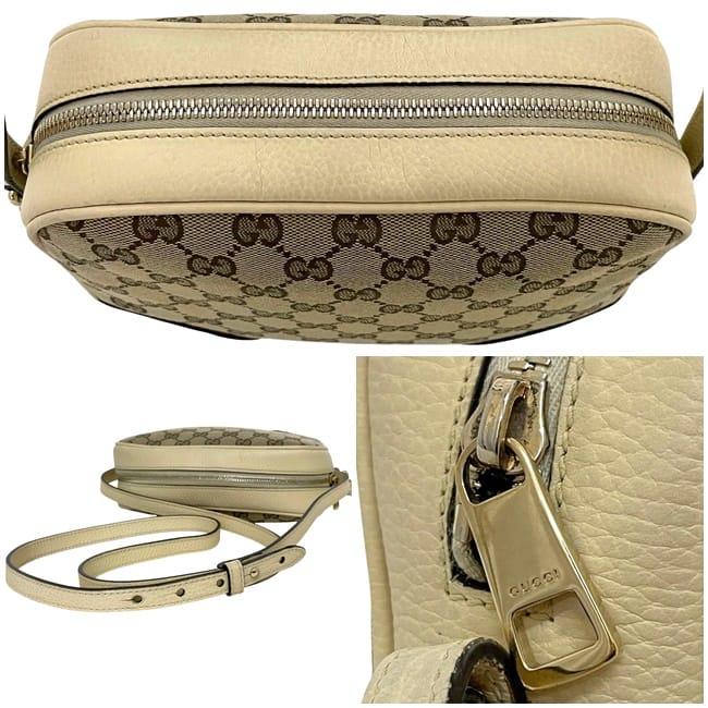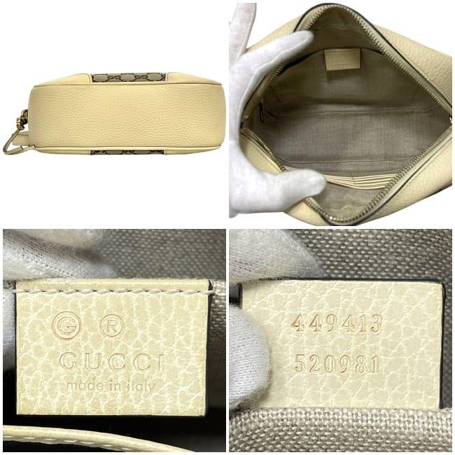 ☆---- 商品について ----☆グッチ ショルダーバッグ f-24235 ベージュ クリームホワイト 449413 美品 キャンバス レザー 中古 520981 GUCCI クロスボディ ミニバッグ GGキャンバス ロゴ 総柄 ファスナー メンズ レディース GG 軽い 斜め掛け 肩掛け 男女兼用 ブランド 本物 鑑定済み