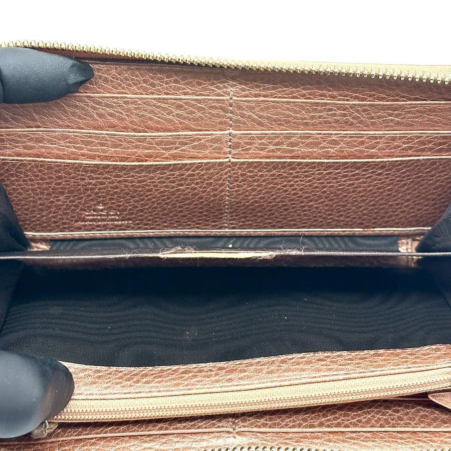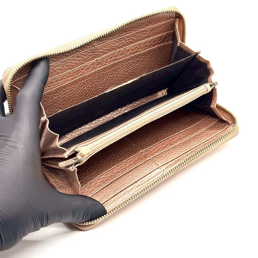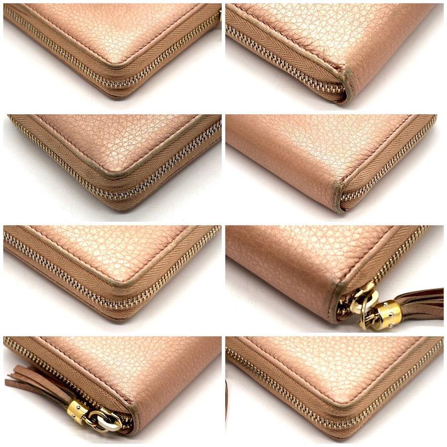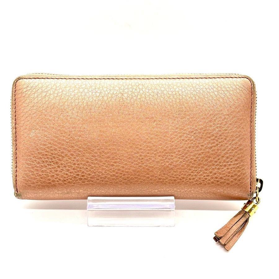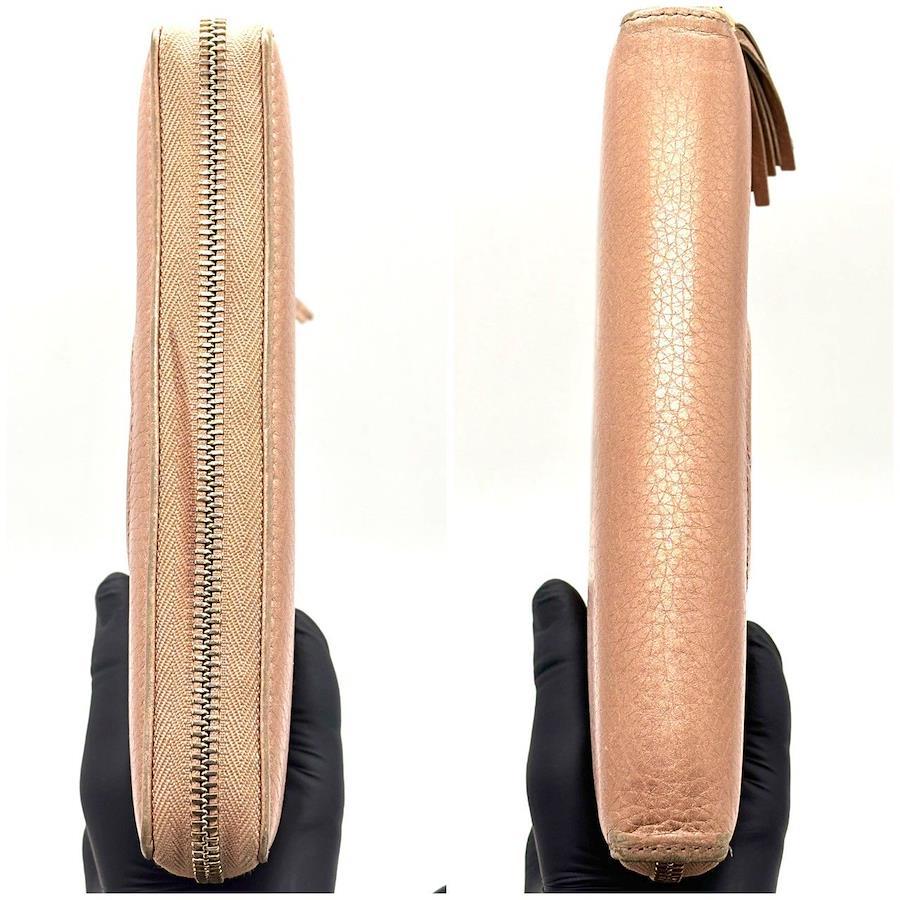 GUCCI Soho Long Wallet with Round Zipper, Interlocking Tassel, Leather, 12 Cards, Pink Beige