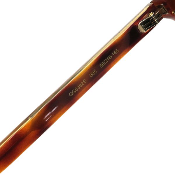 ■採寸#56□18-145 レンズ:5.5×4.6cm レンズ間:1.6cm つる長さ:14cm■素材表記なし■コメントグッチからサングラスが入荷しました!サイドのシェリーラインとべっ甲柄がオシャレなサングラスです☆全体にやや通常着用によるスレキズやくすみ、左つるに極僅かな歪み、鼻当てにスレ汚れが見受けられる為Bランクでのご紹介となりました。目立つダメージや汚れはなく、まだまだ問題なくご着用いただけるお品です◎