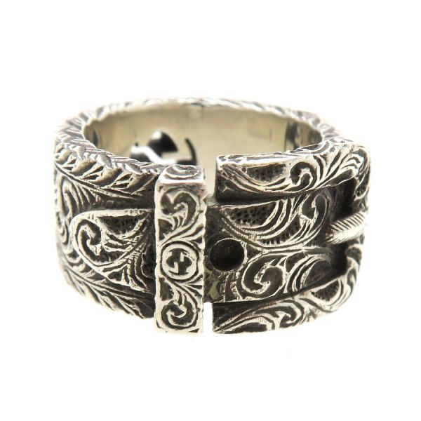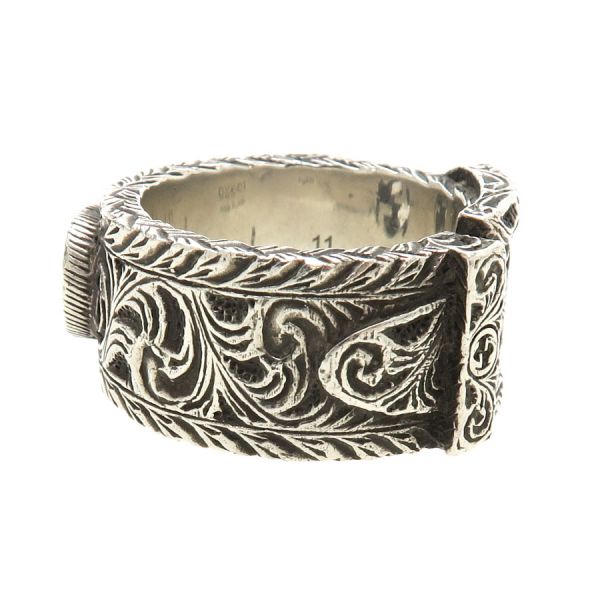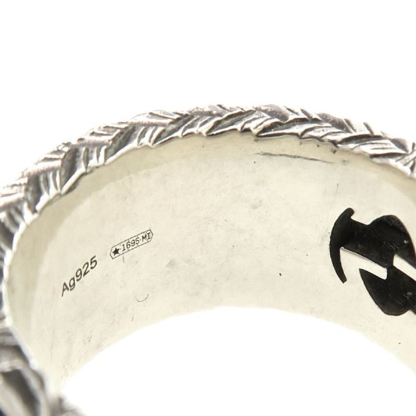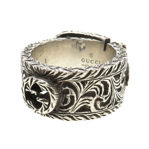 ■採寸#11 実寸:10.5号 幅:1.0cm■素材Ag925■コメントグッチからSVリングが入荷しました。人気のインターロッキングGにベルトモチーフ×アラベスクがオシャレなリングです☆状態は全体にシルバー特有のくすみや小キズ、若干いぶしがうすくなっている為Bランクでのご紹介となりました。目立つダメージや汚れはなく、まだまだ問題なくご使用頂けます。※リングは日本サイズ表記になります。
