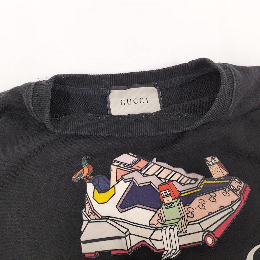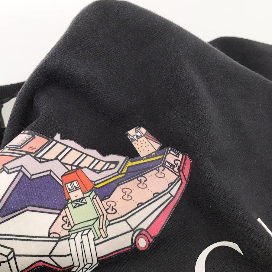 GUCCI Sweatshirt with Logo and Sneaker Print, Unisex, 100% Cotton, Size L, Black