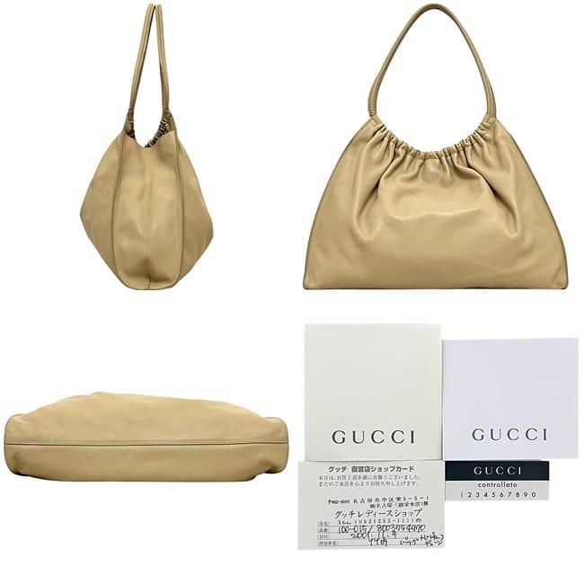 ☆---- 商品について ----☆グッチ トートバッグ ec-24528 ベージュ 100-015 8003754970 美品 レザー 中古 001 4332 00 2404 GUCCI シンプル 革バッグ 肩掛け 巾着 ギャザー クリーム 革バッグ ヴィンテージ レディース 定番 人気 レザートート 巾着トート ブランド 本物 鑑定済み