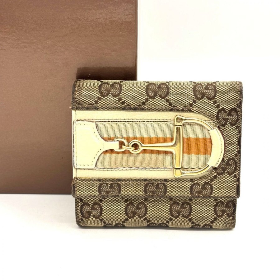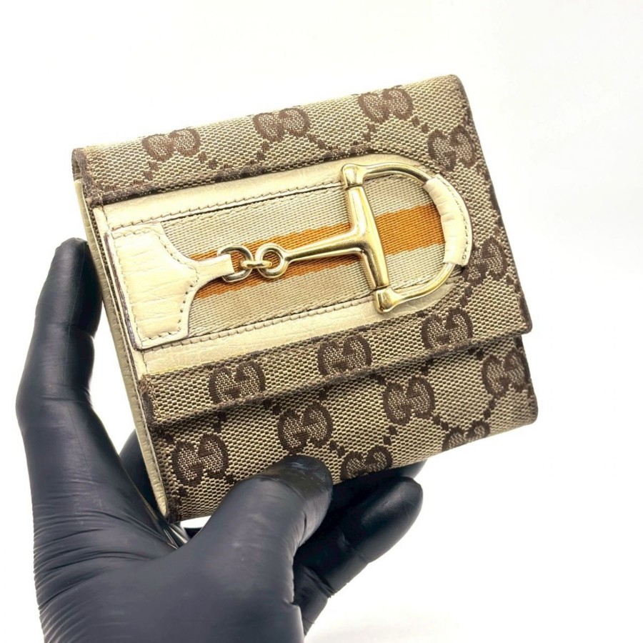 【商品説明】・クラシックな意匠を日常に取り入れたい方へ。GGキャンバスにホースビットとシェリーラインを配したデザインが、手元にさりげない格を添えます。コンパクトな三つ折り仕様でバッグの中でもかさばらず、外出時の所作まで美しく整えてくれるウォレットです。