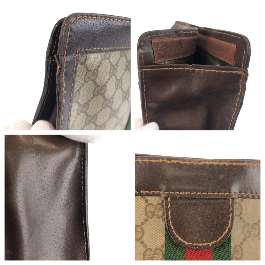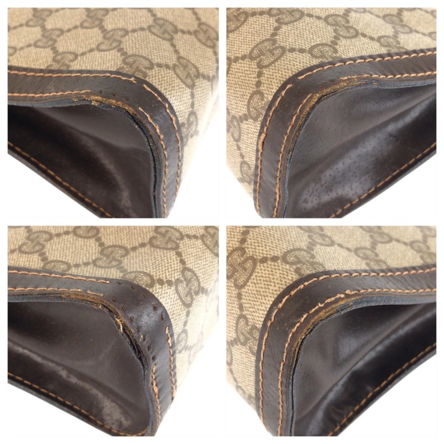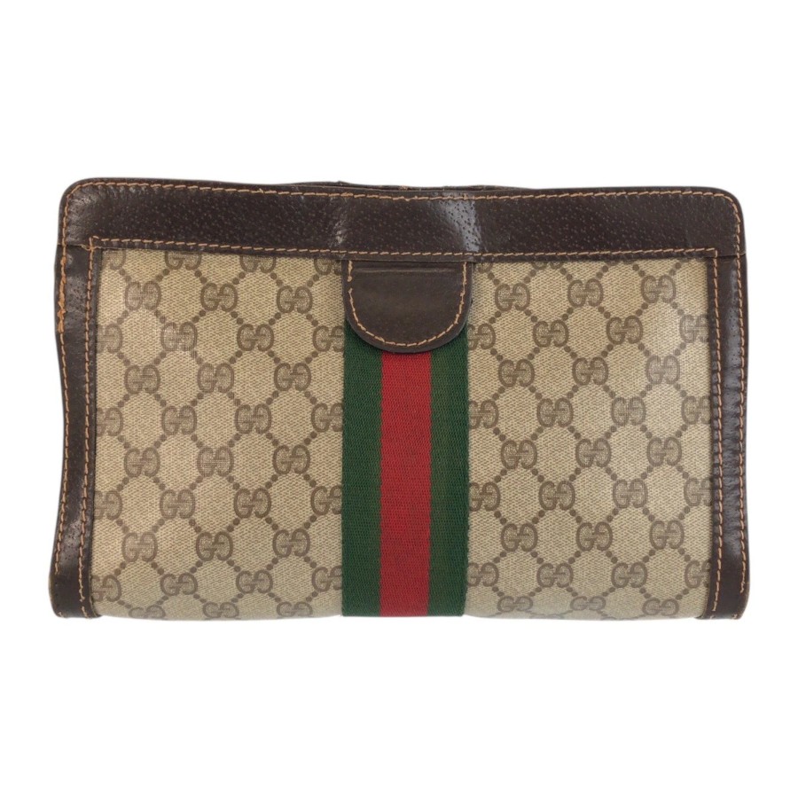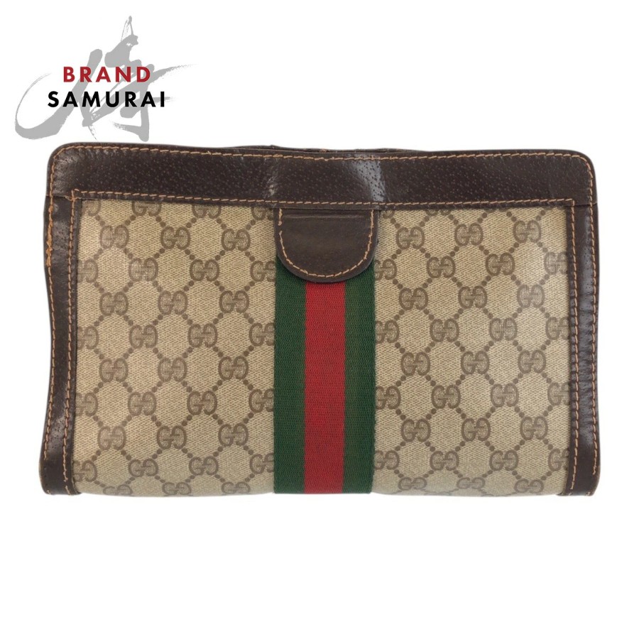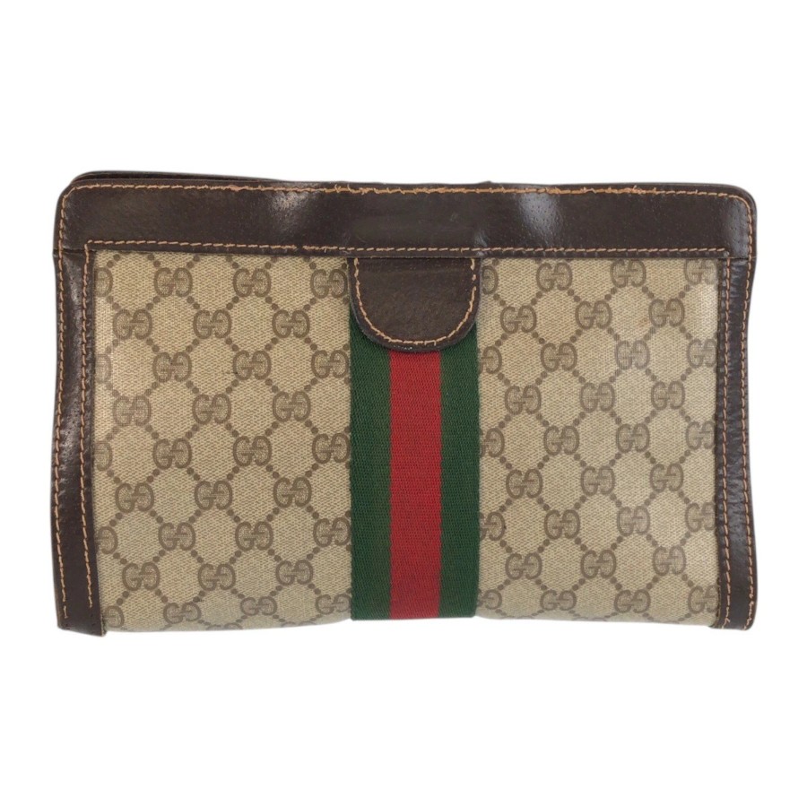 GUCCI Vintage Sherry Line Beige Brown GG Supreme Canvas/Leather Clutch Bag Second Bag Unisex Men's 601215 [Used]
