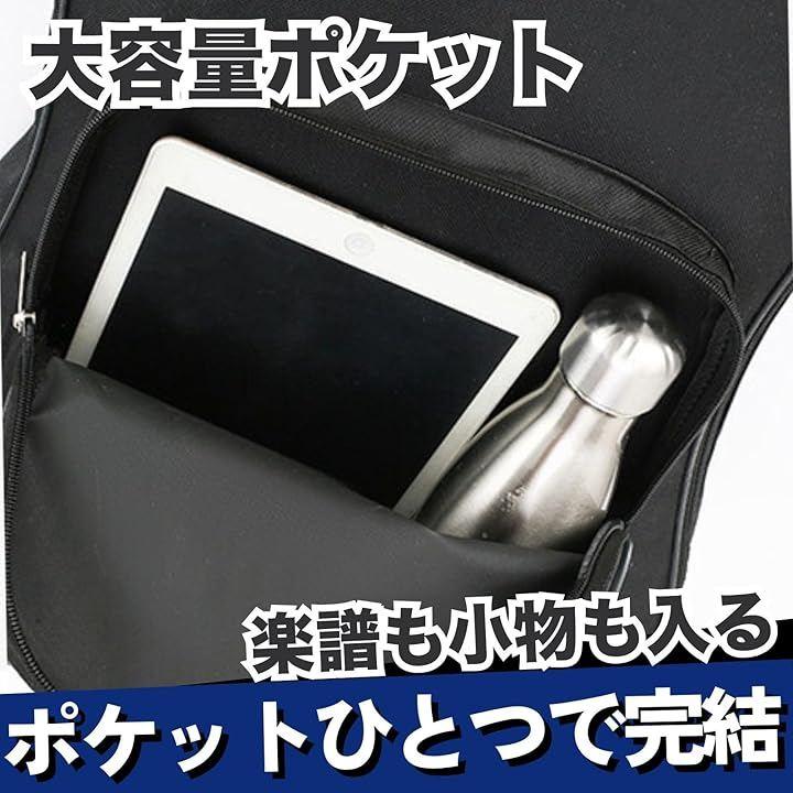 大容量ポケット付きで楽譜やピックケースも収納可能。