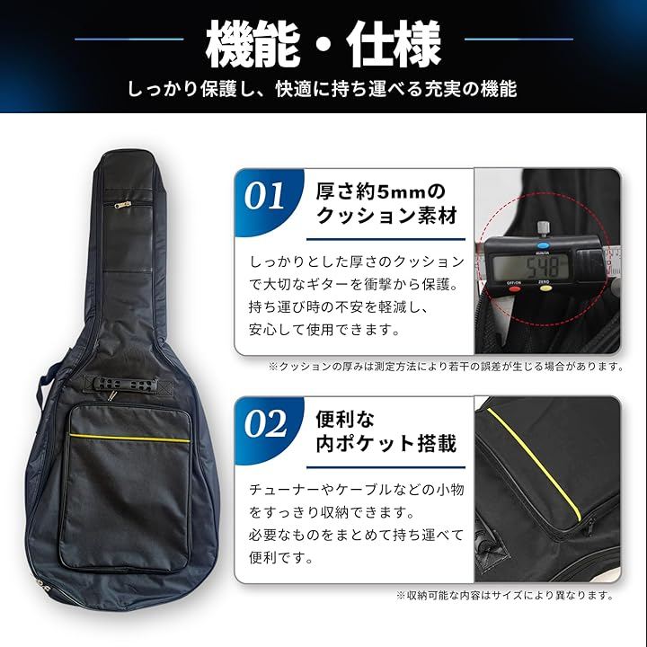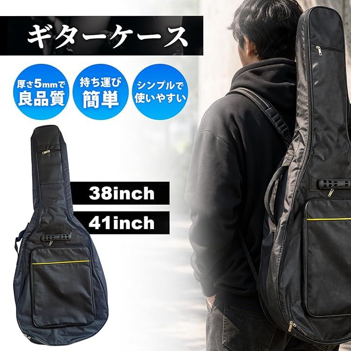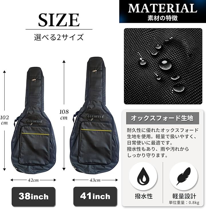 「セット内容」ギターケースx1点 「サイズ(約)」41インチ:108cmx43cmx13cm 「カラー」ブラック 「材質」オックスフォード