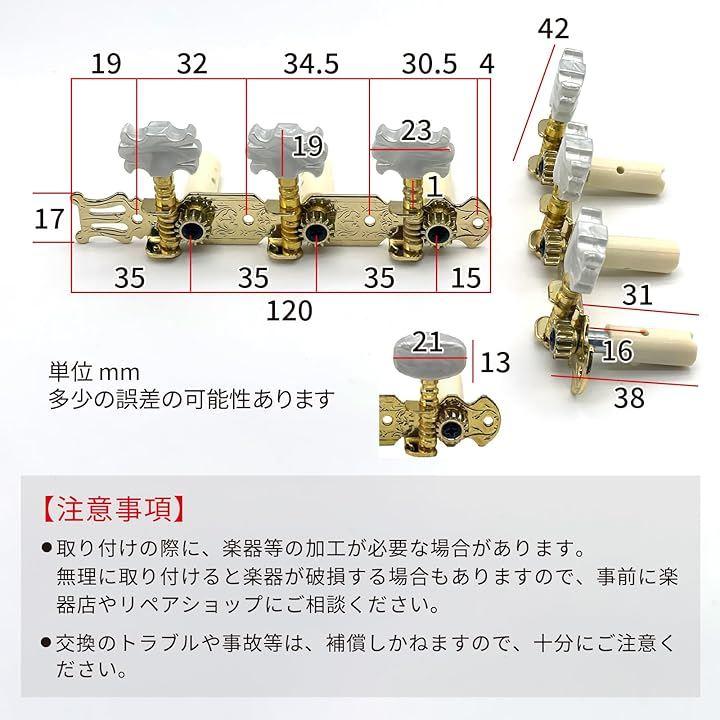 「簡単取付」このチューニングギターペグは、3個で1連の右用と、3個1連の左用の2つのマシンヘッドになっているので、付属セットの固定用ネジだけで簡単に取り付けることができます。
