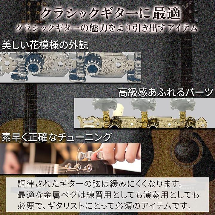 「クラシックギターに最適」このギターペグは、美しい花模様の外観で高級感に溢れるパーツで、クラシックギターの魅力をより引き出す装飾アイテムでもあります。
