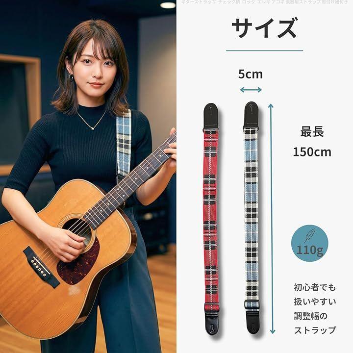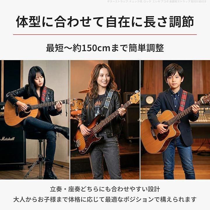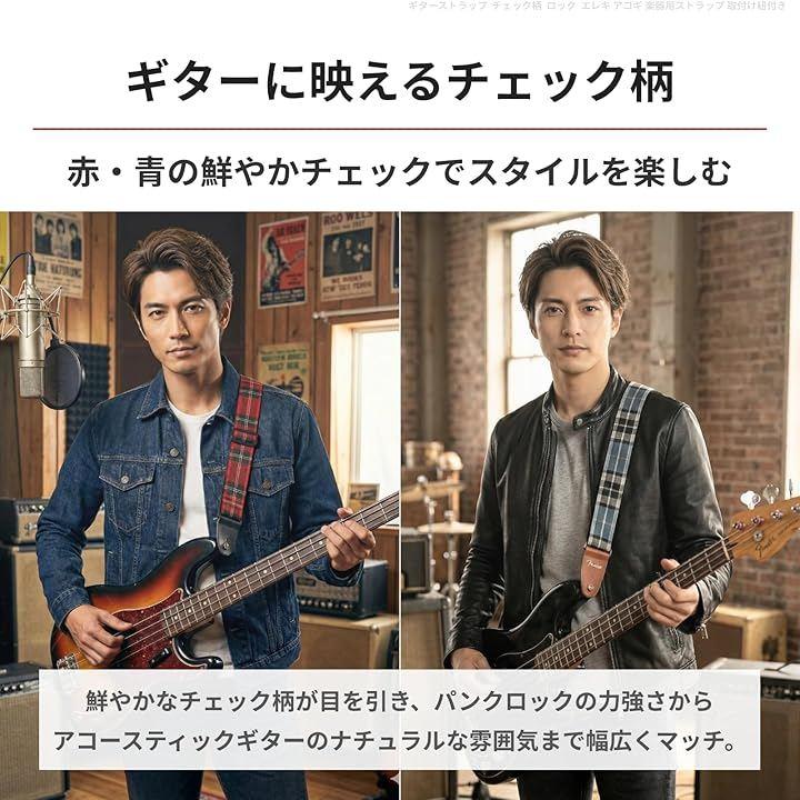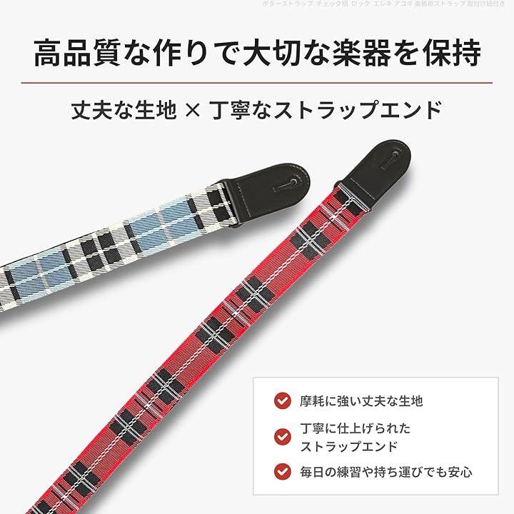 「ロックやアコースティックギターに映えるチェック柄」鮮やかなチェック柄が目を引くギターストラップです 。