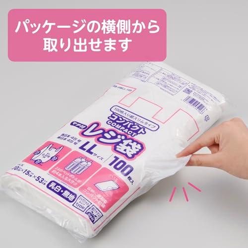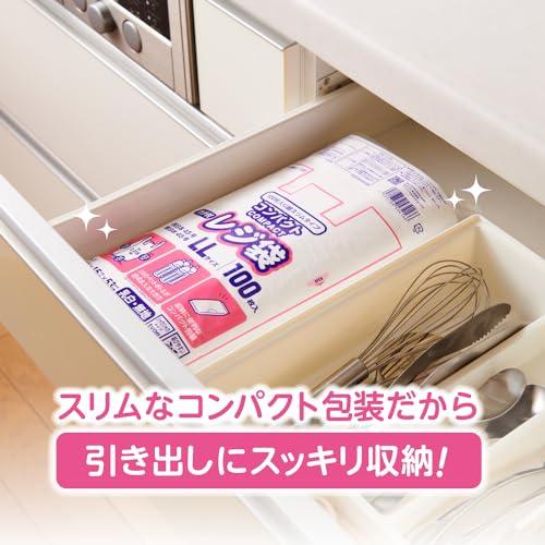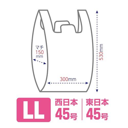 ●収納しやすいスリムなコンパクトパッケージの100枚入りレジ袋●LLサイズは、2Lペットボトルが約4本入る大きさです 本体サイズ(1枚あたり):縦53cm×横30cm×マチ幅15cm 商品規格:西日本45号 東日本45号 素材:ポリエチレン(シャカシャカタイプ) 2Lペットボトルが約4本入る大きさ 収納に便利なコンパクトパッケージ