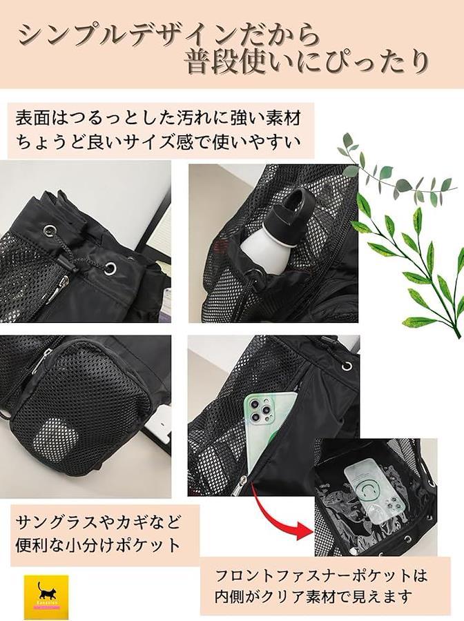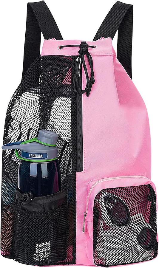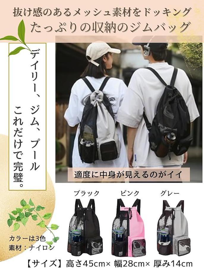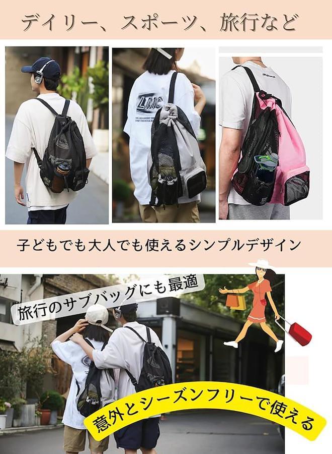 濡れたものを持ち運ぶときや中身がわかる収納として便利なメッシュ素材を多用したリュックサックです。