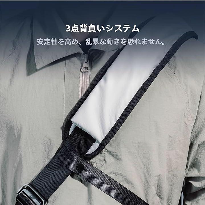 * 男性の体型にフィットする調整可能なストラップを採用しており、長時間の使用でも肩への負担を軽減。
