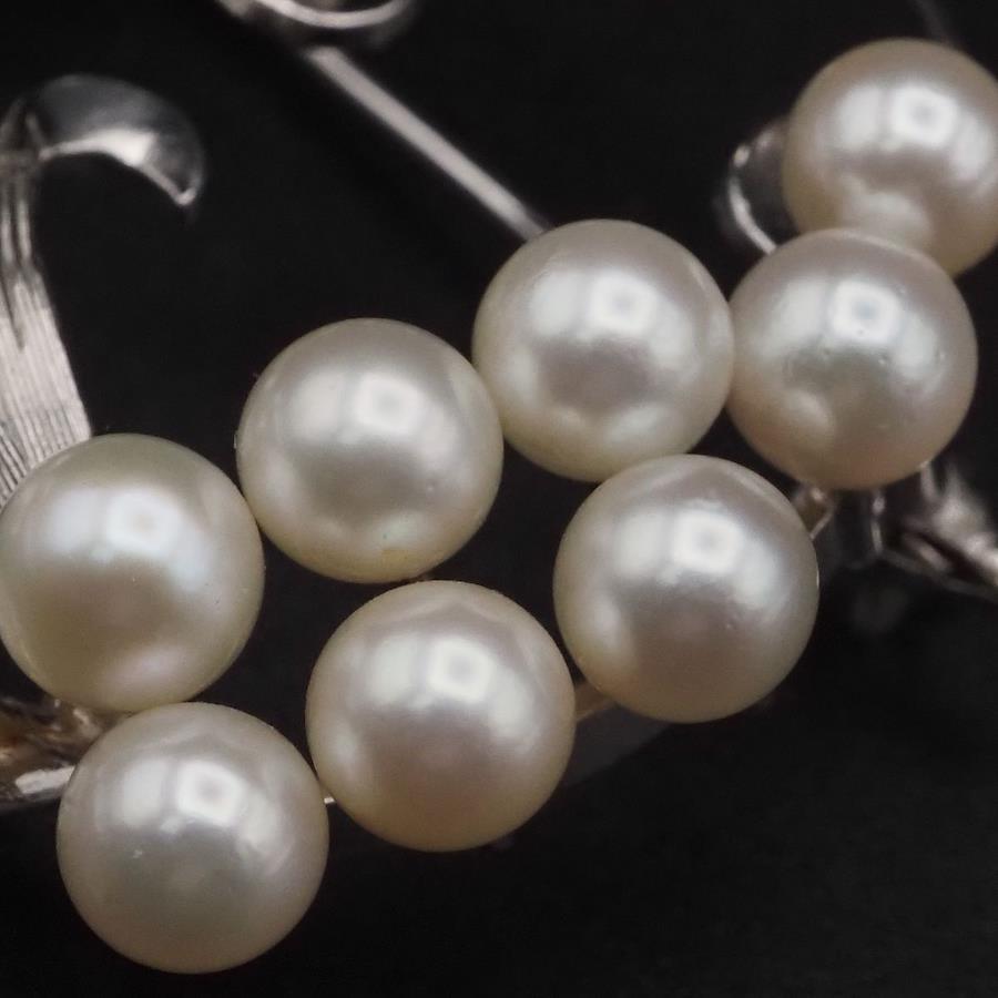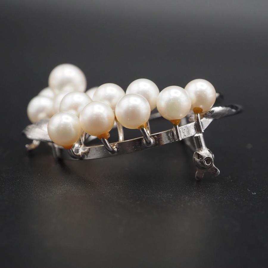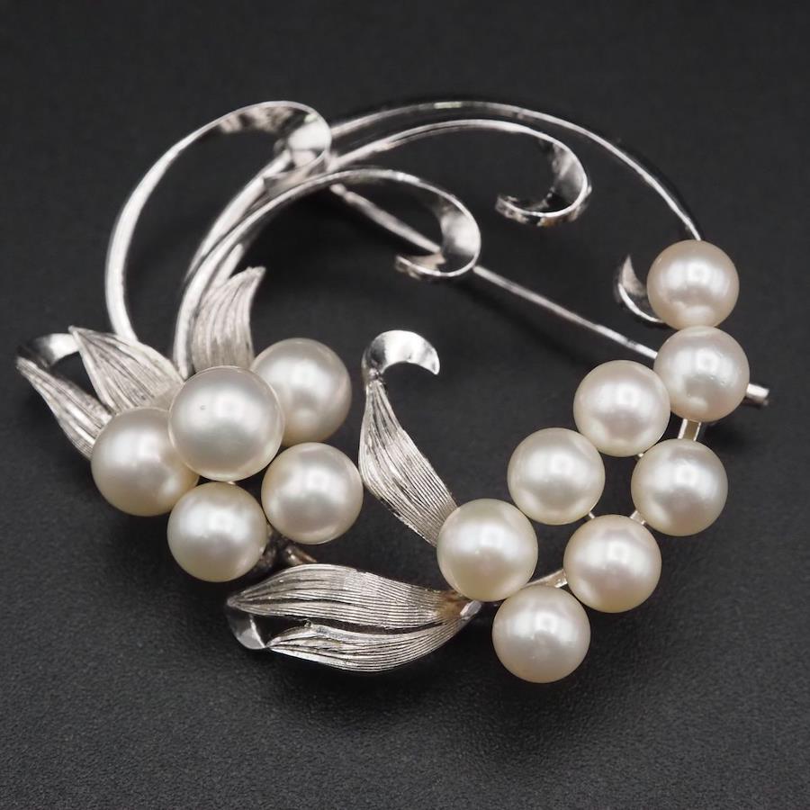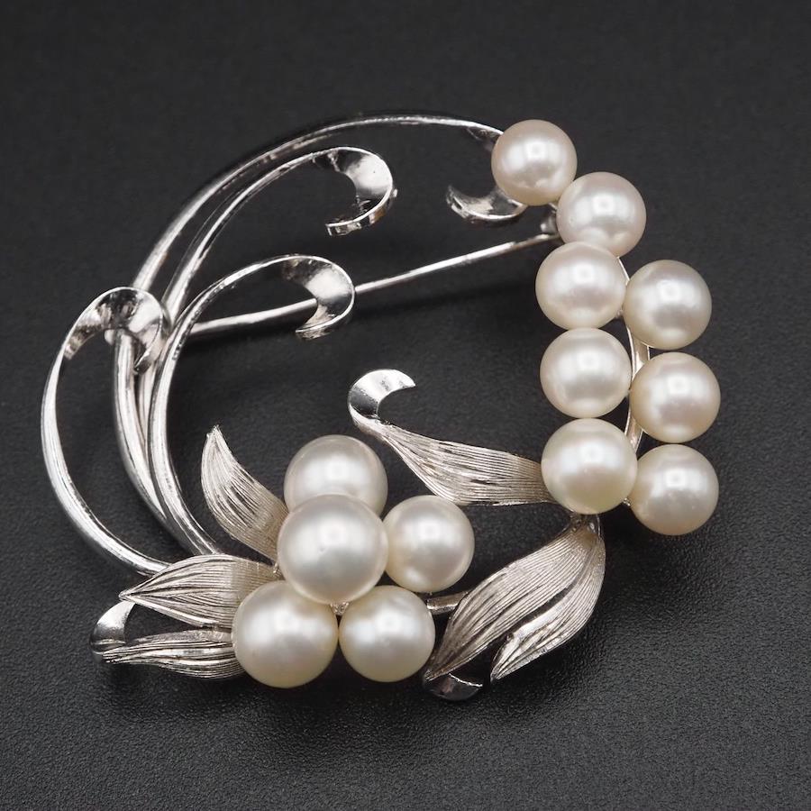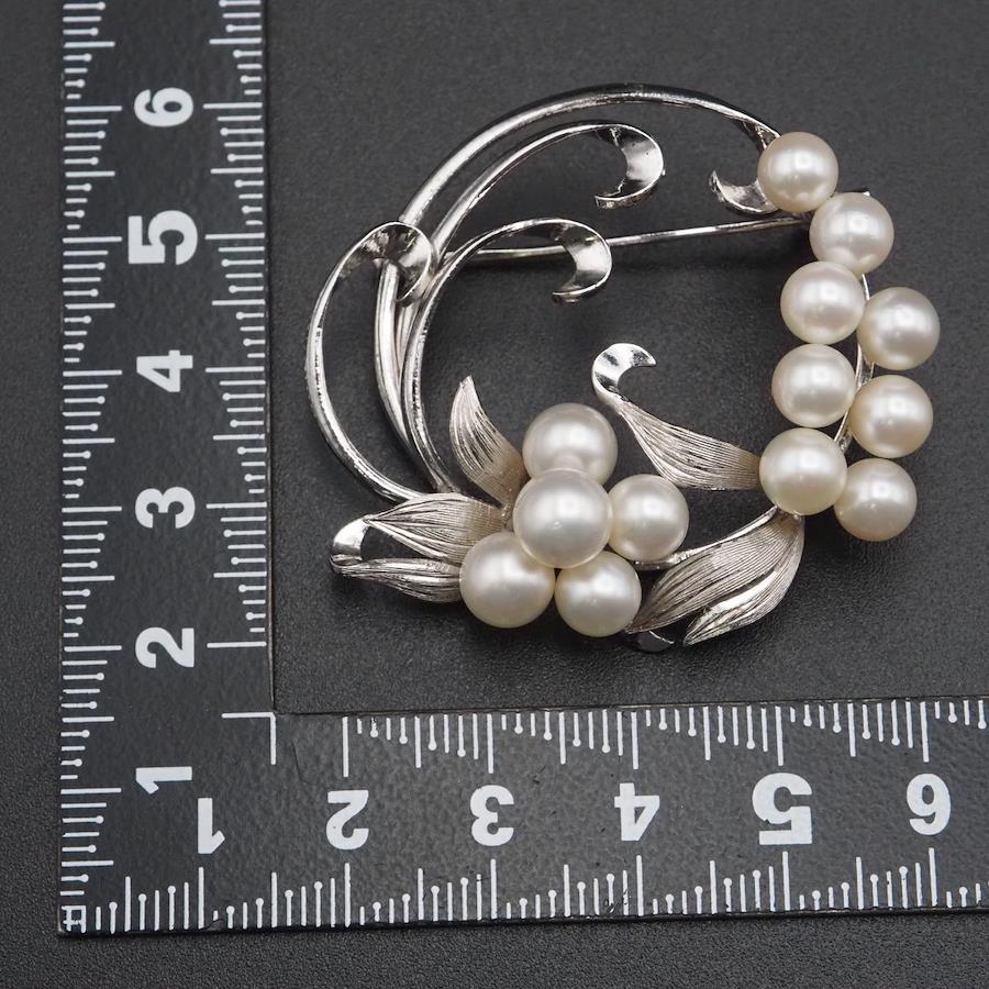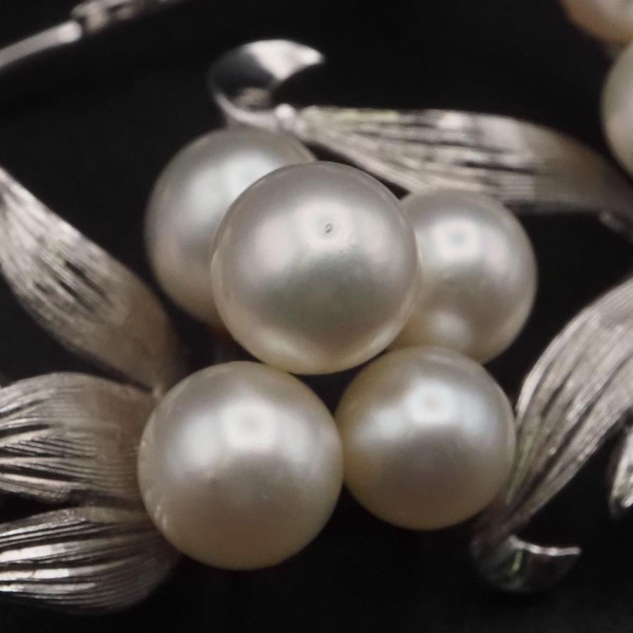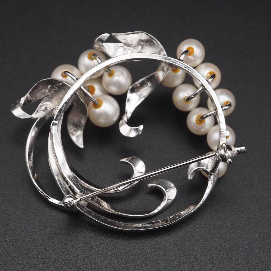 H280 Freshwater Pearl Brooch with Leaf Design, Silver Corsage, June Birthstone