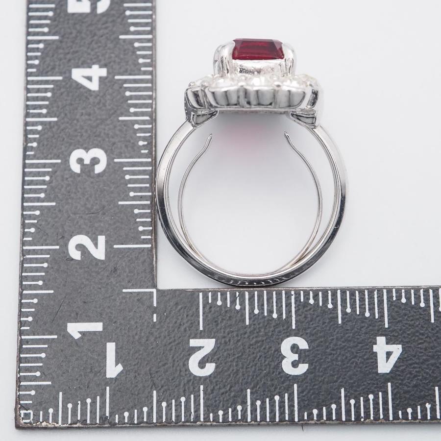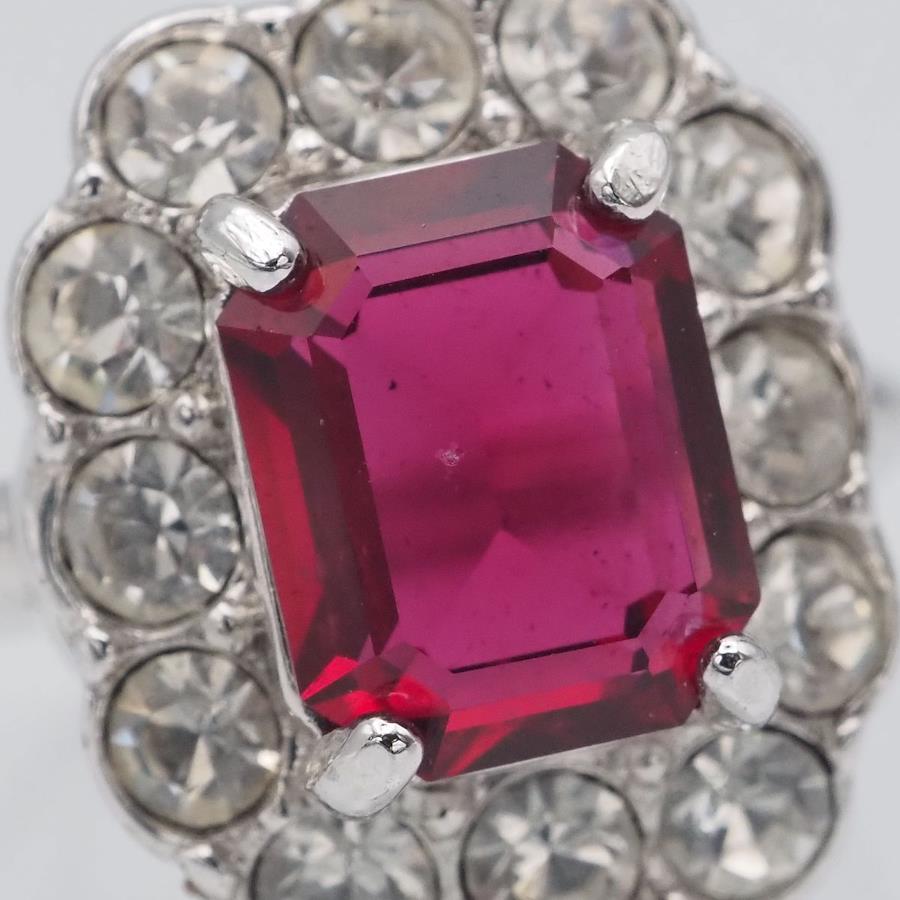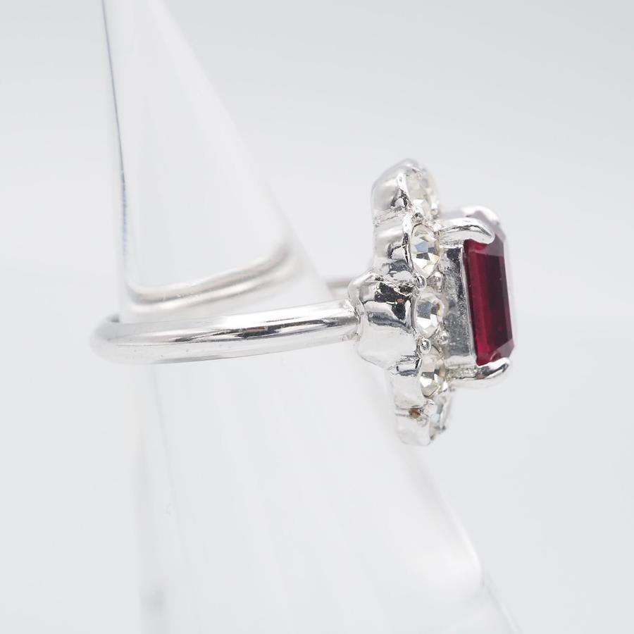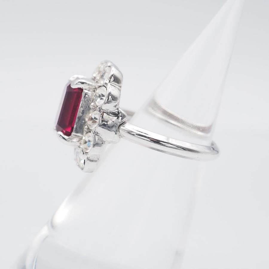 H289 A&S Attwood and Sawyer Ruby-Style Rhinestone Silver Design Ring, Size 14