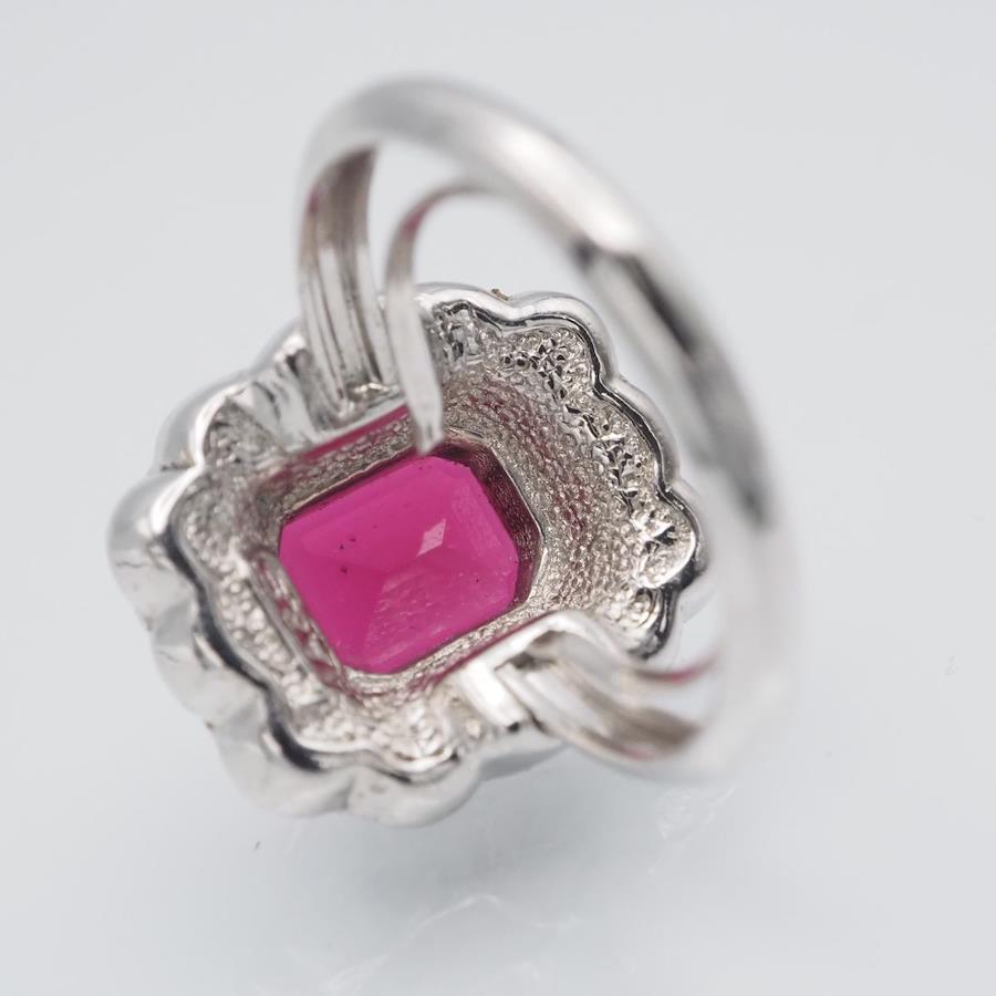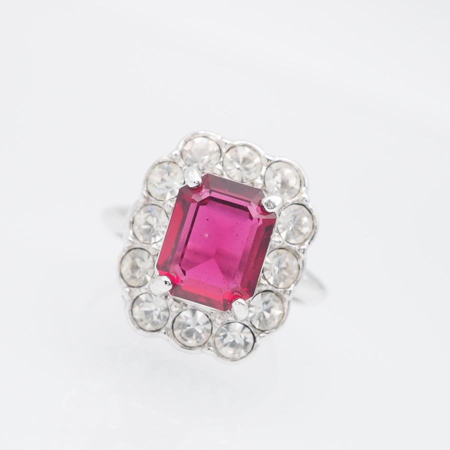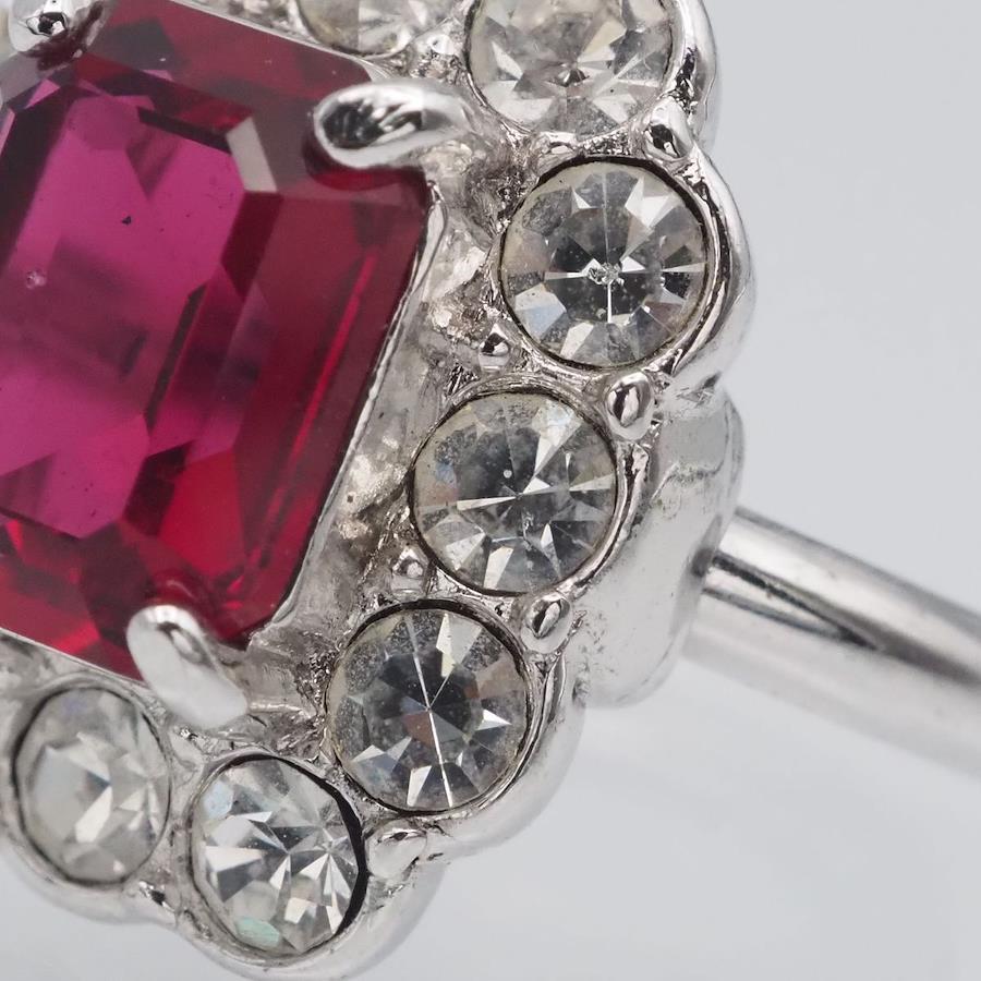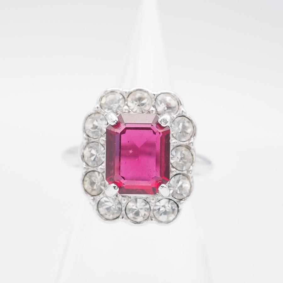 H289 A&S Attwood and Sawyer Ruby-Style Rhinestone Silver Design Ring, Size 14