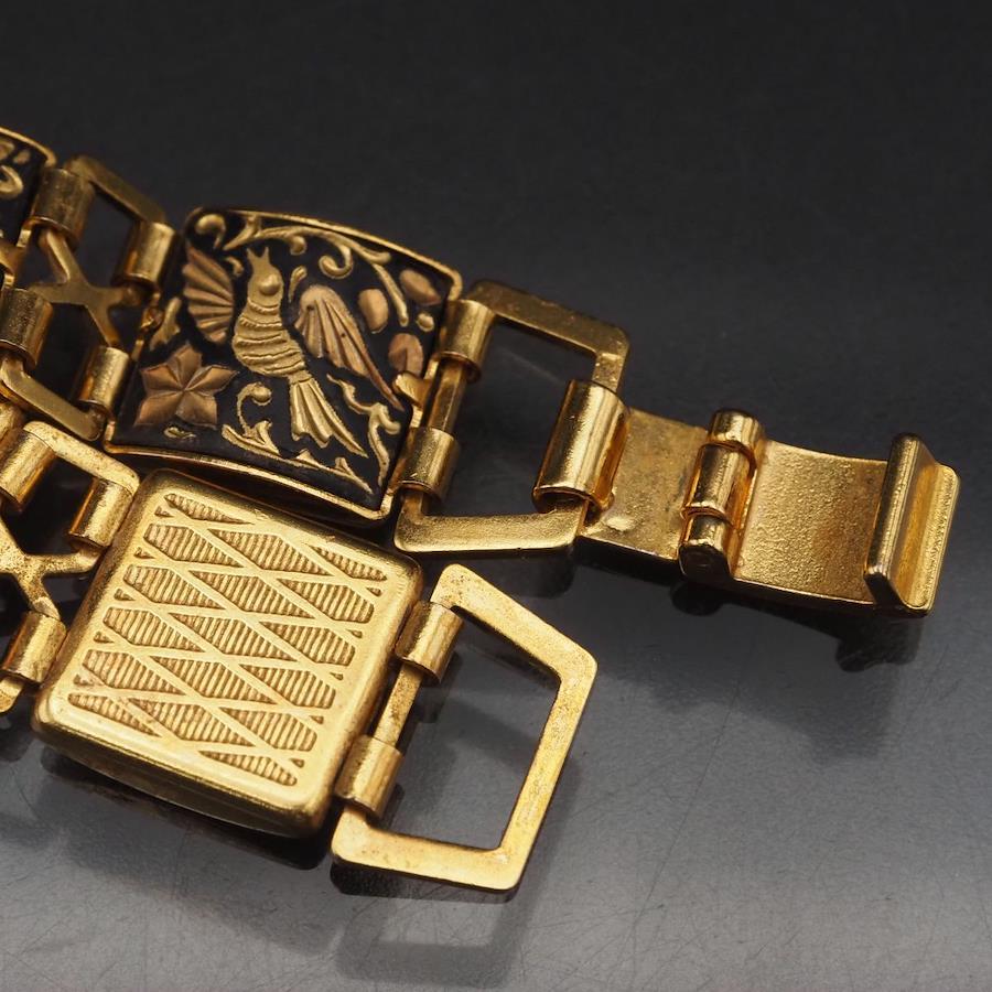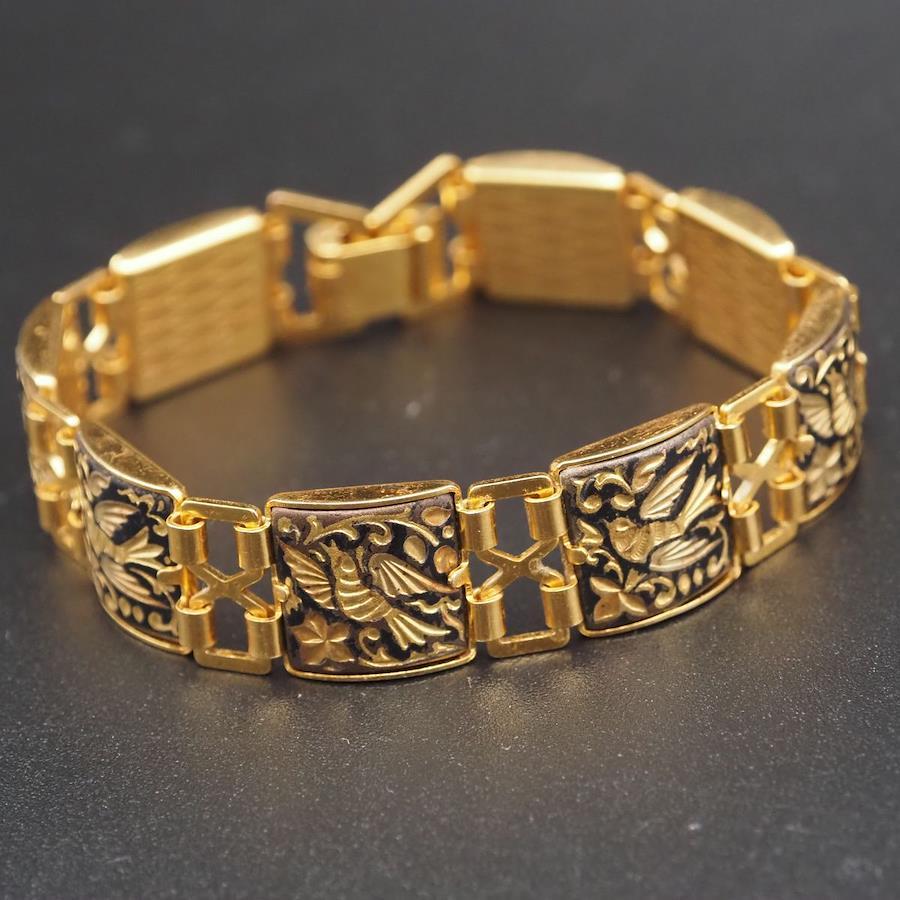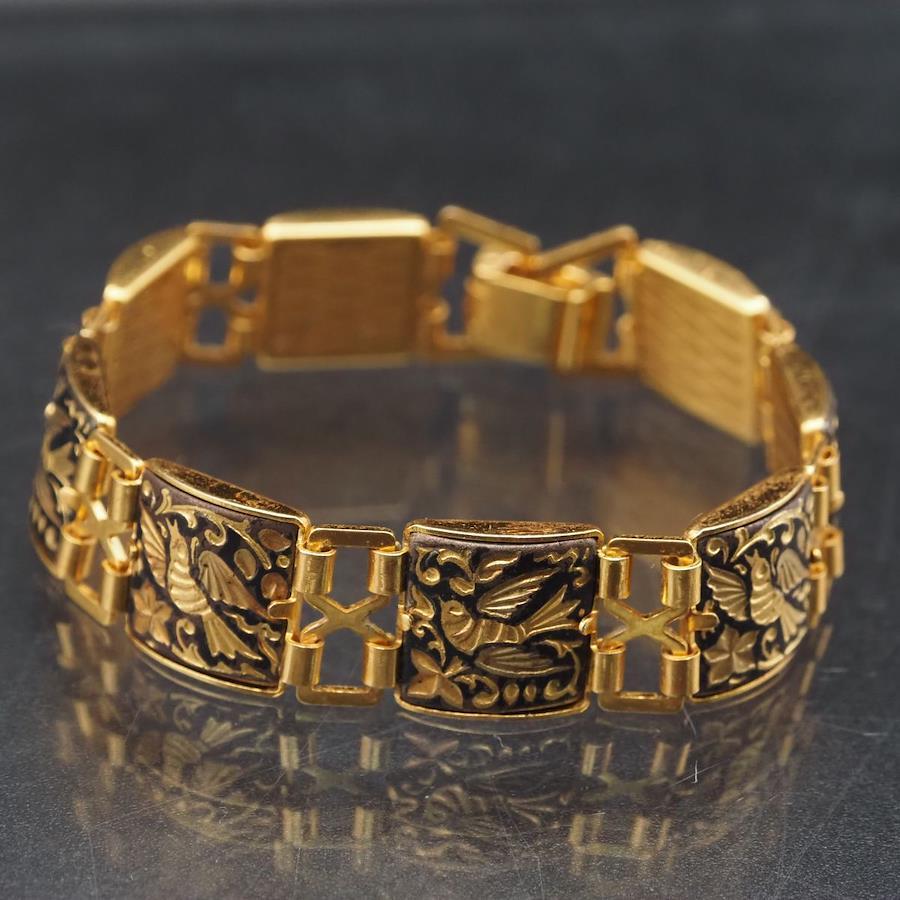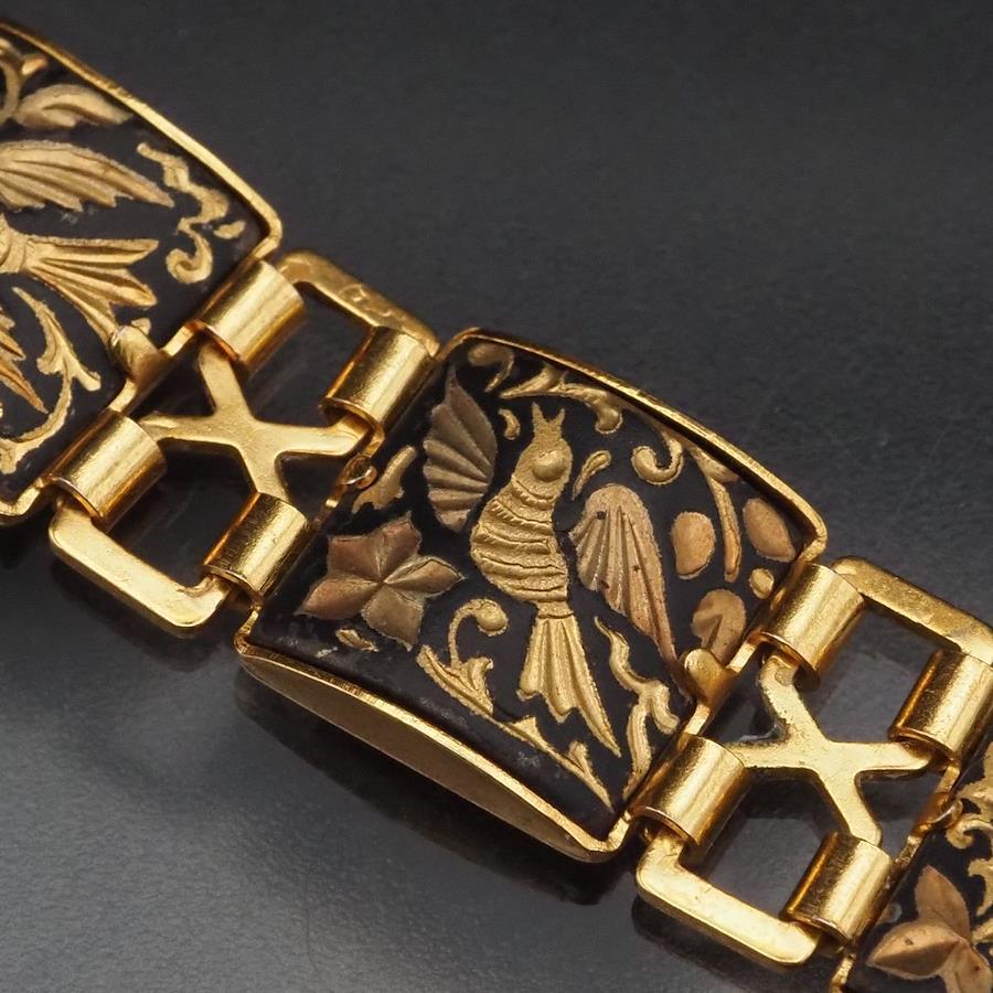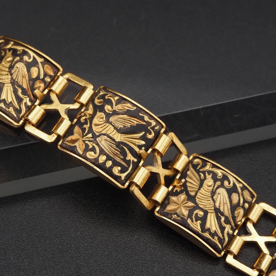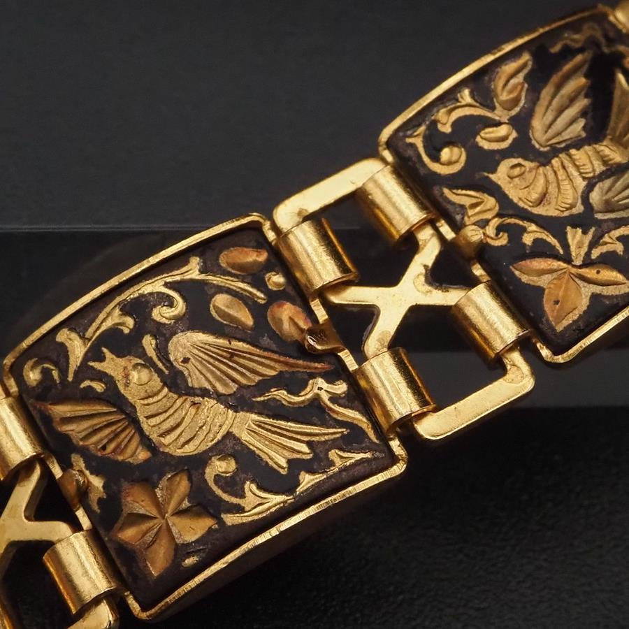 H385 Goldwork Inlaid Bracelet Bird and Flower Pattern Gold Design