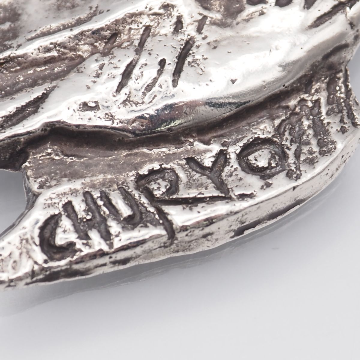おそらく銀製かと思いますが、刻印が無いため断言できません。画像をたくさん掲載しておりますのでそちらでご確認とご判断をお願いいたします。