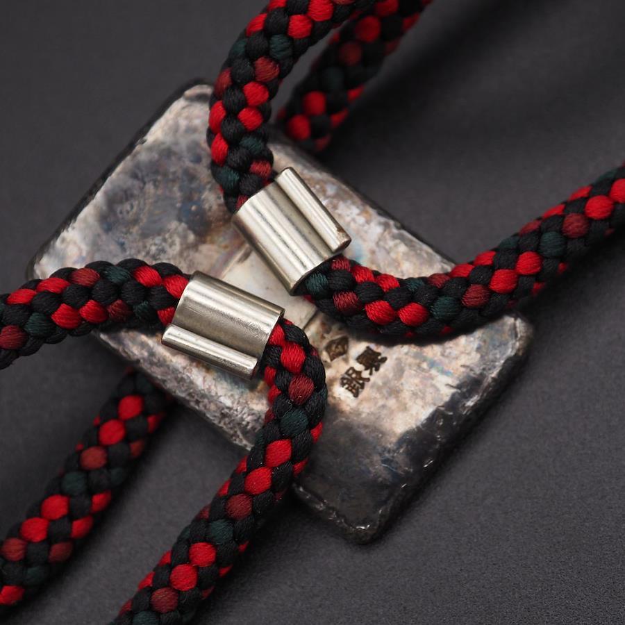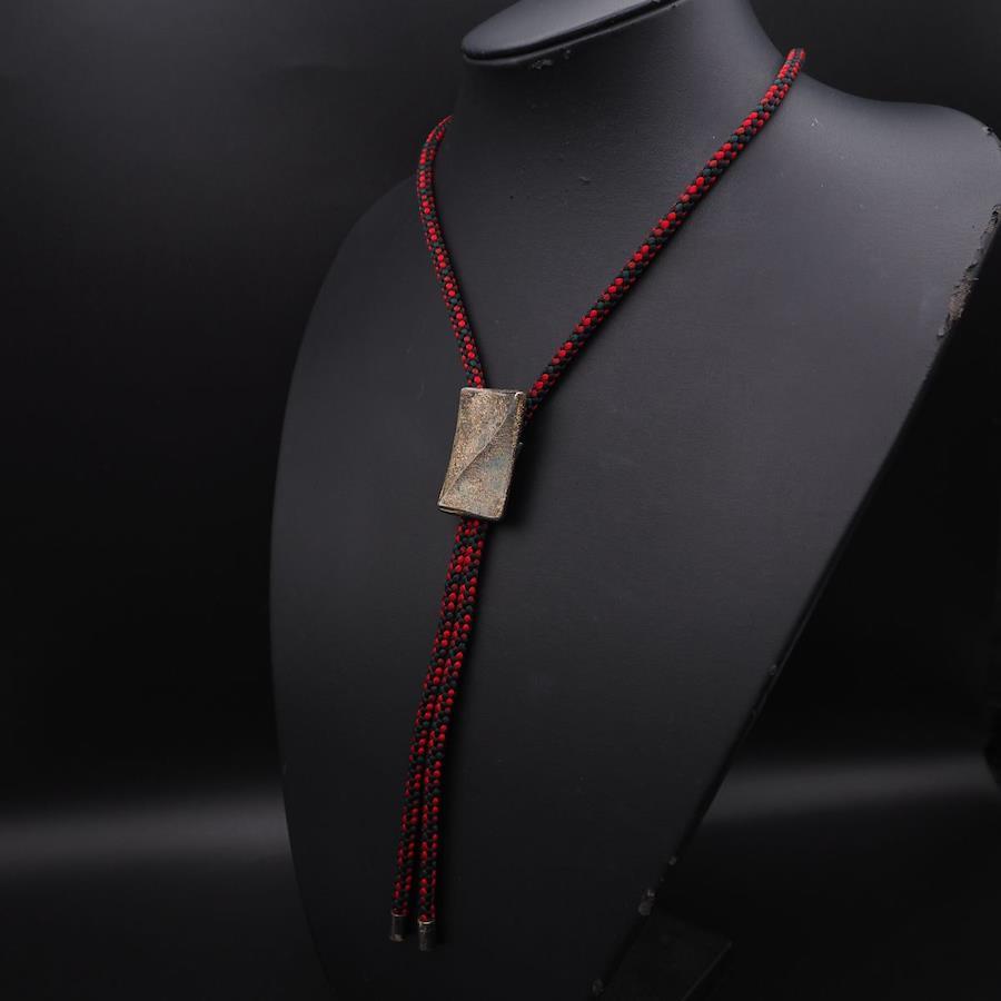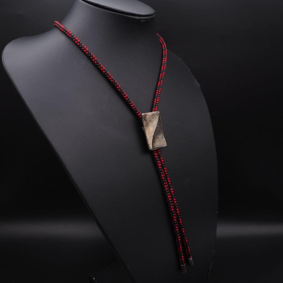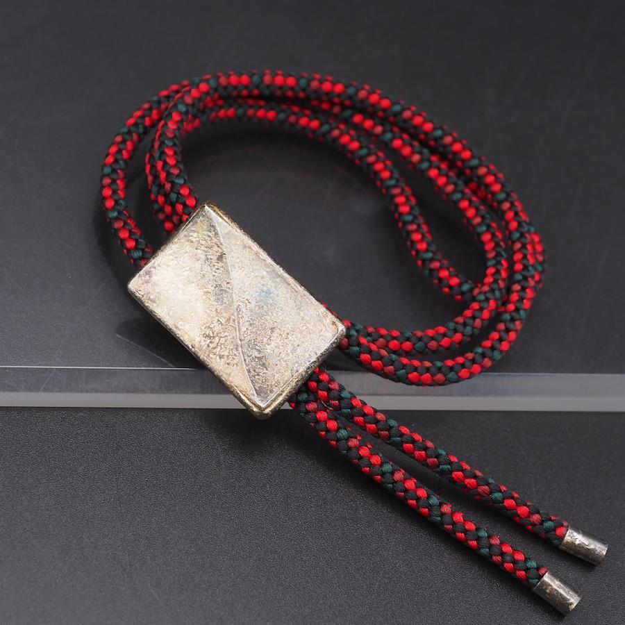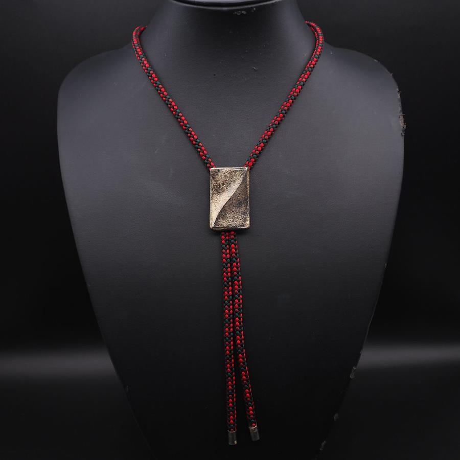 H825 Vintage Artist's Work? Stamped Silver Loop Tie Design Silver String Tie Necklace