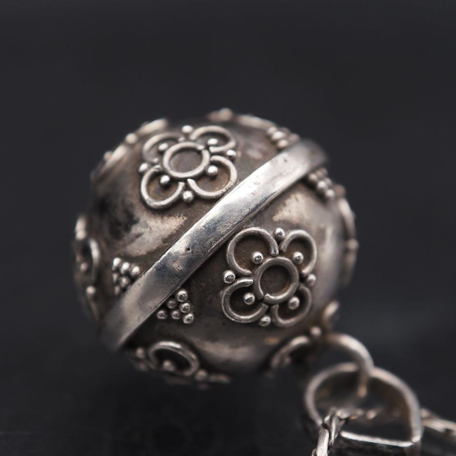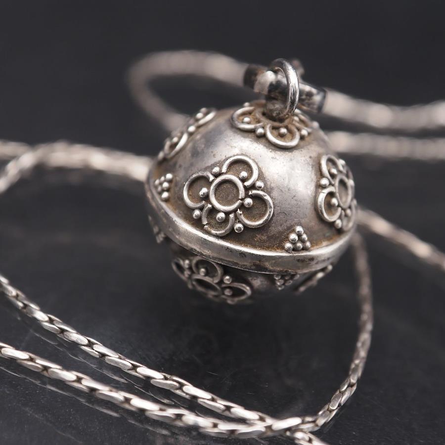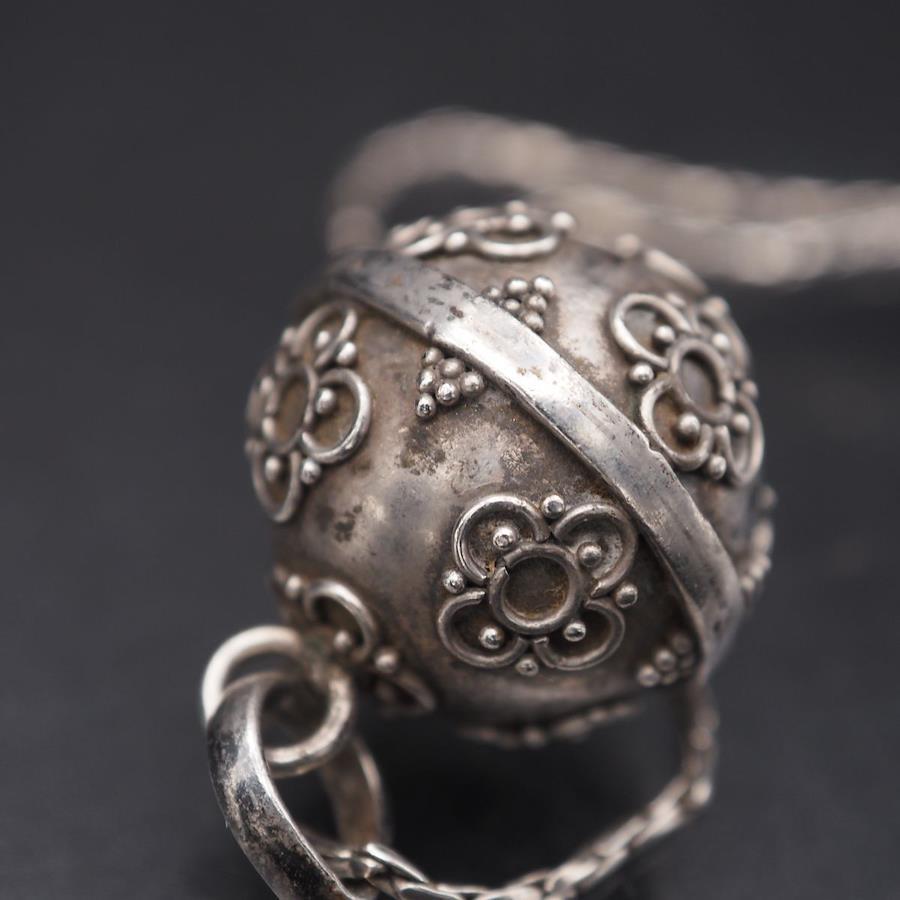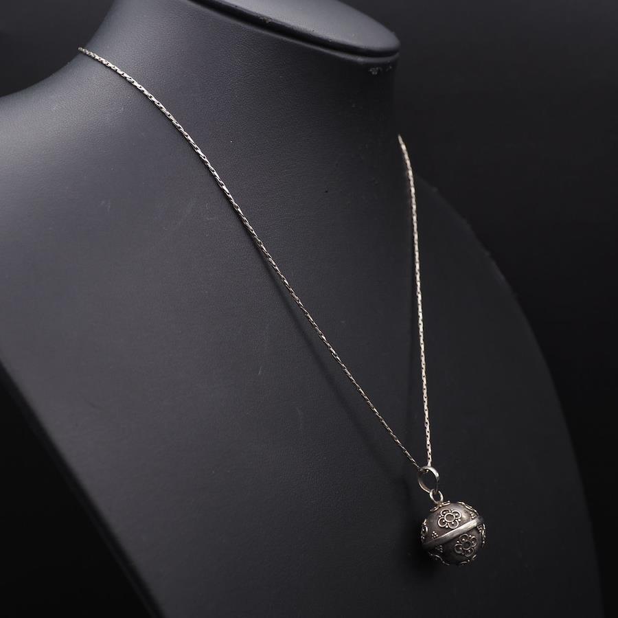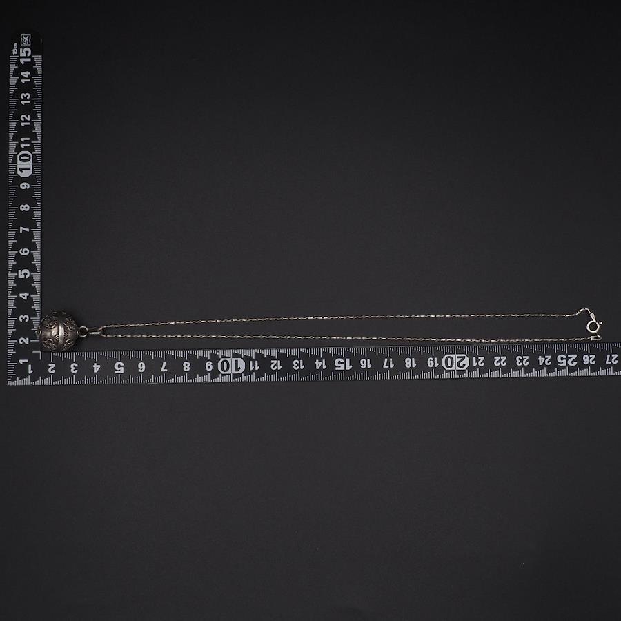 チェーンに925の刻印があります。チャームはおそらく銀製かと思いますが、刻印が無いため断言できません。画像をたくさん掲載しておりますのでそちらでご確認とご判断をお願いいたします。