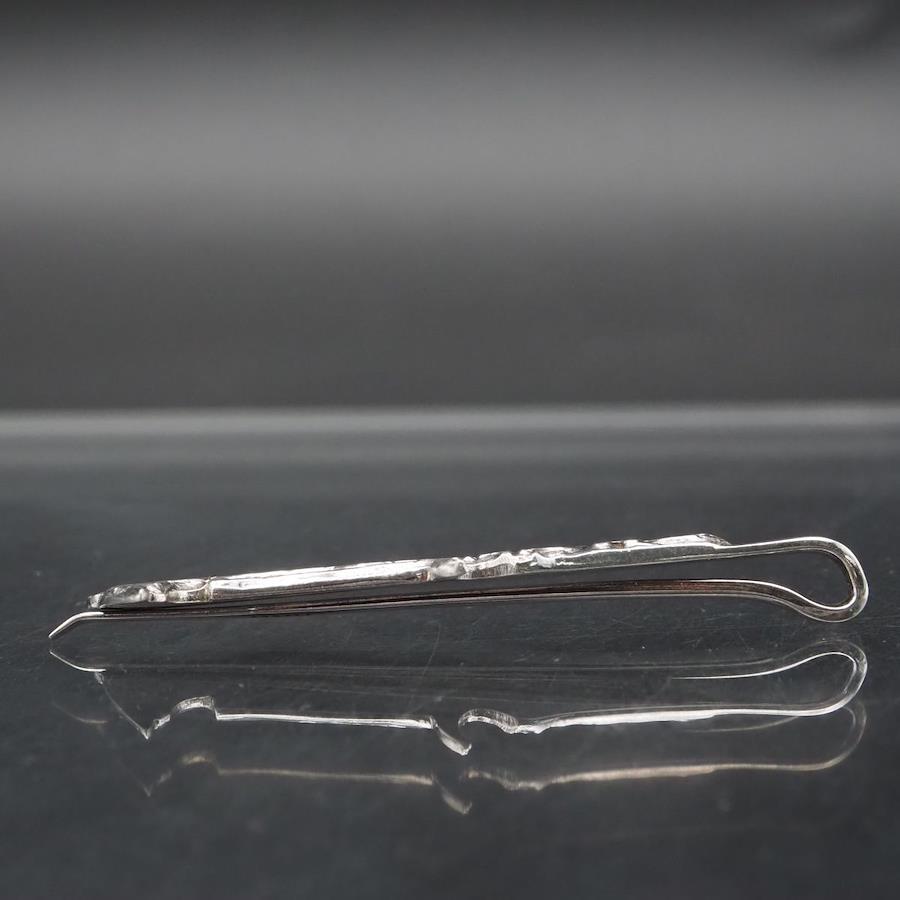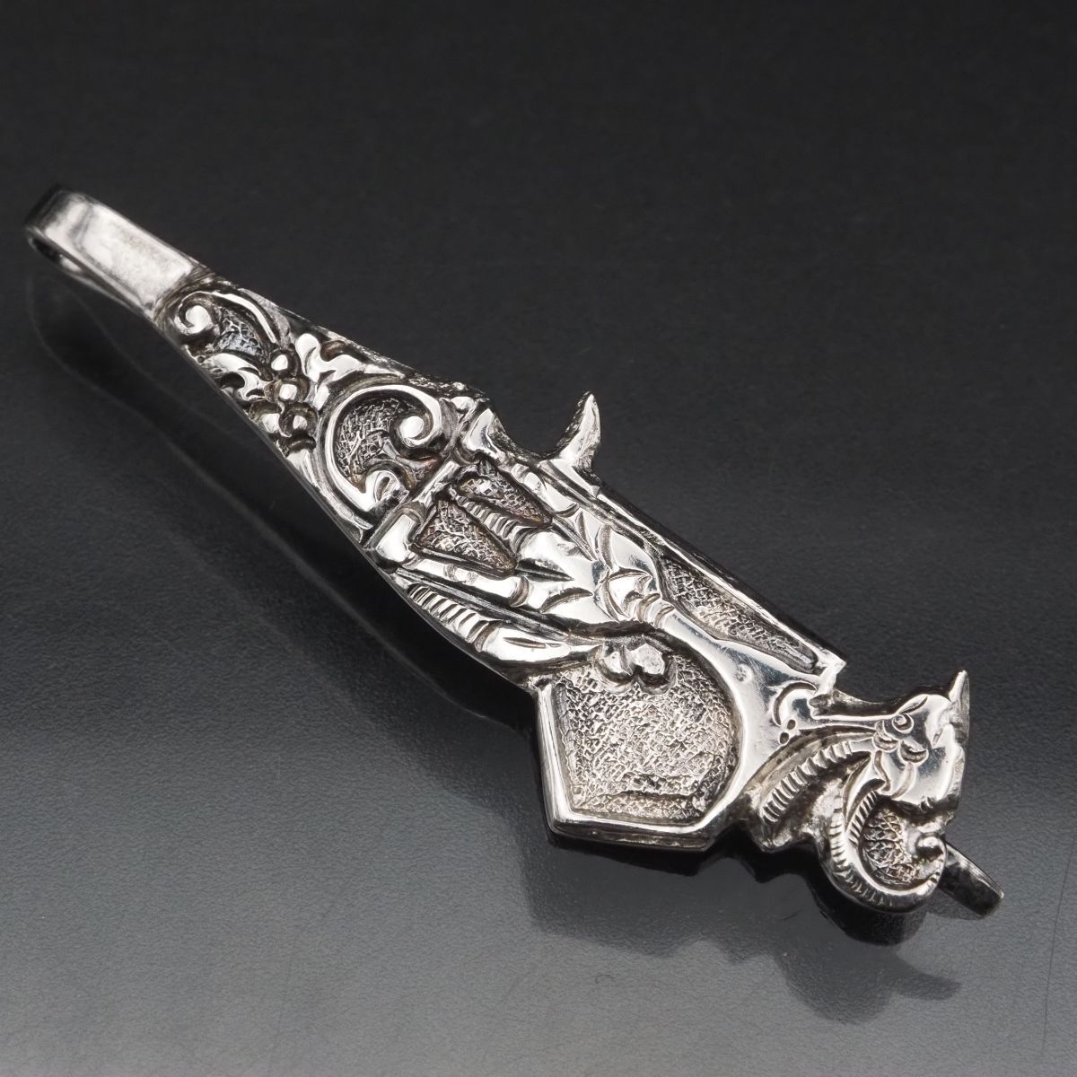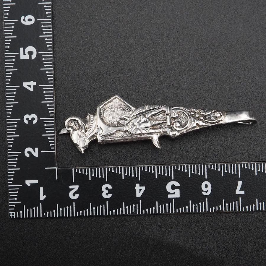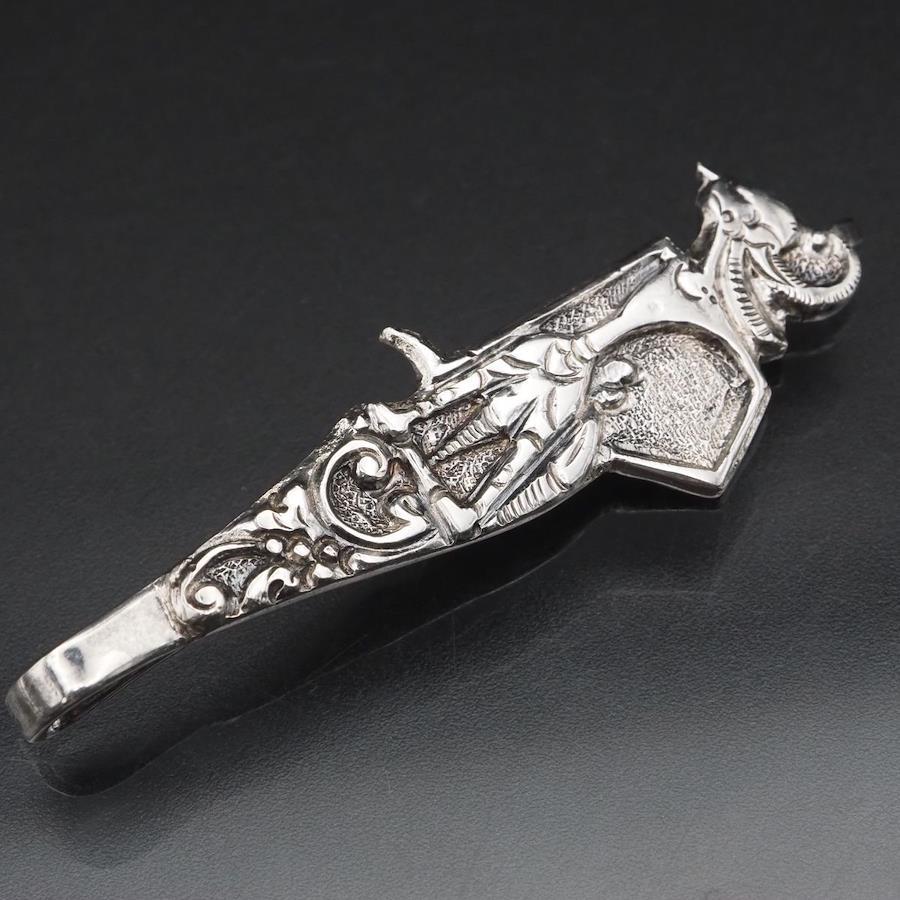 H892 Vintage 800 Stamped Tie Clip, Ethnic Design, Silver