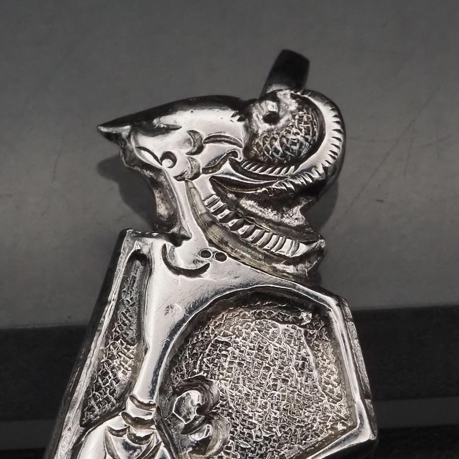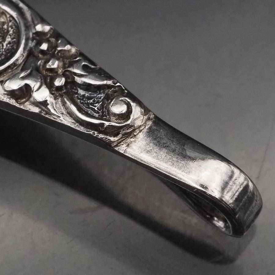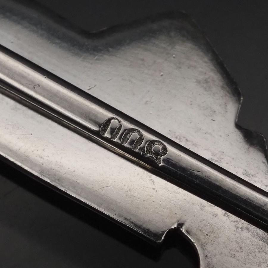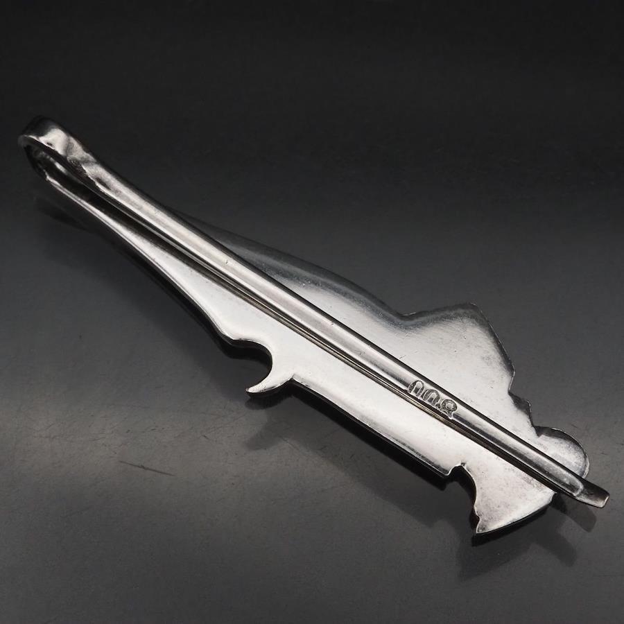 H892 Vintage 800 Stamped Tie Clip, Ethnic Design, Silver