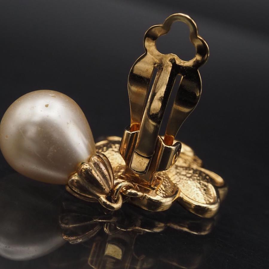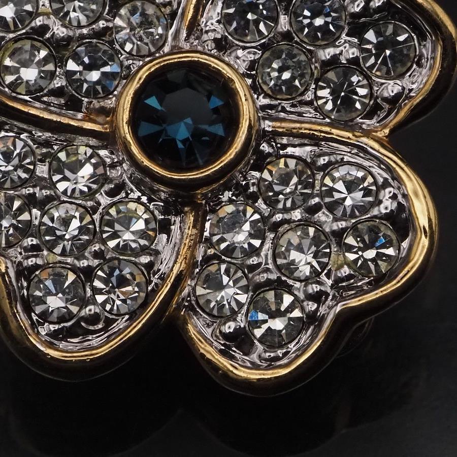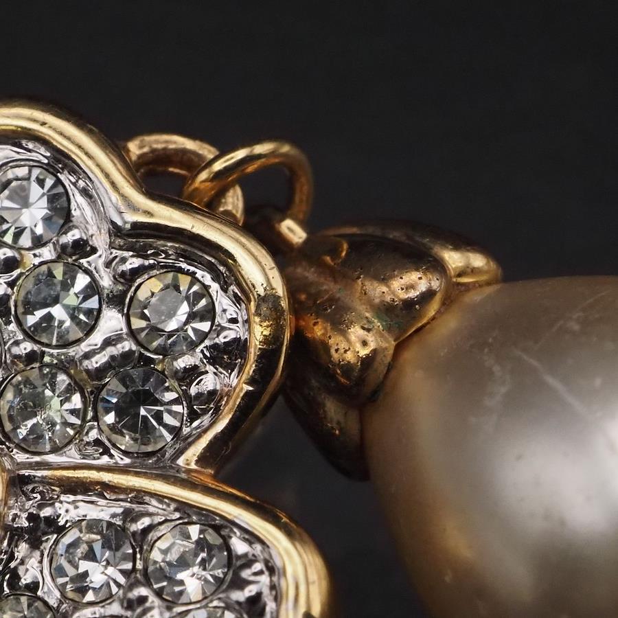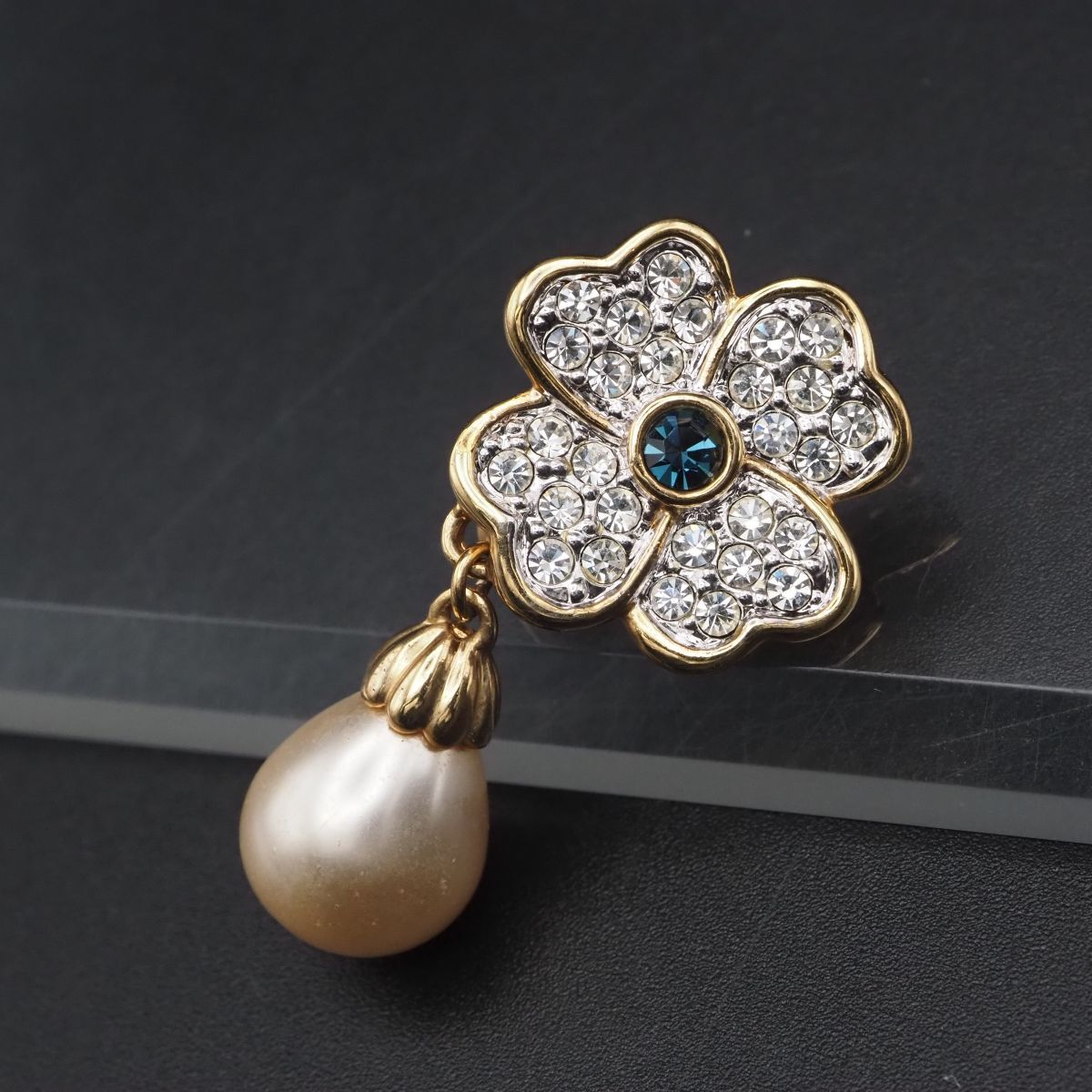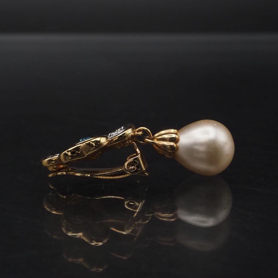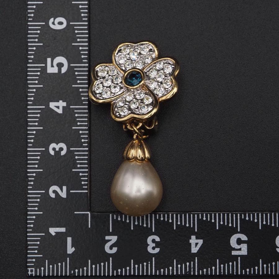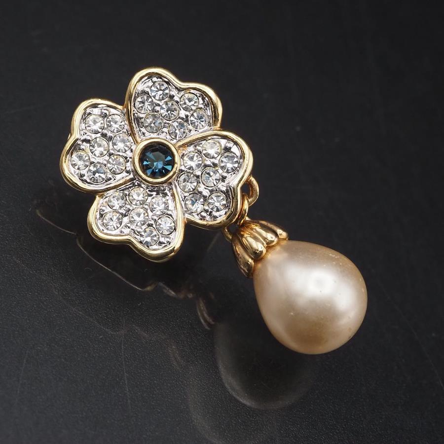 H968 Earring, Single Ear, Flower Sapphire-Style Rhinestone Pave Faux Pearl Gold Design Costume Jewelry