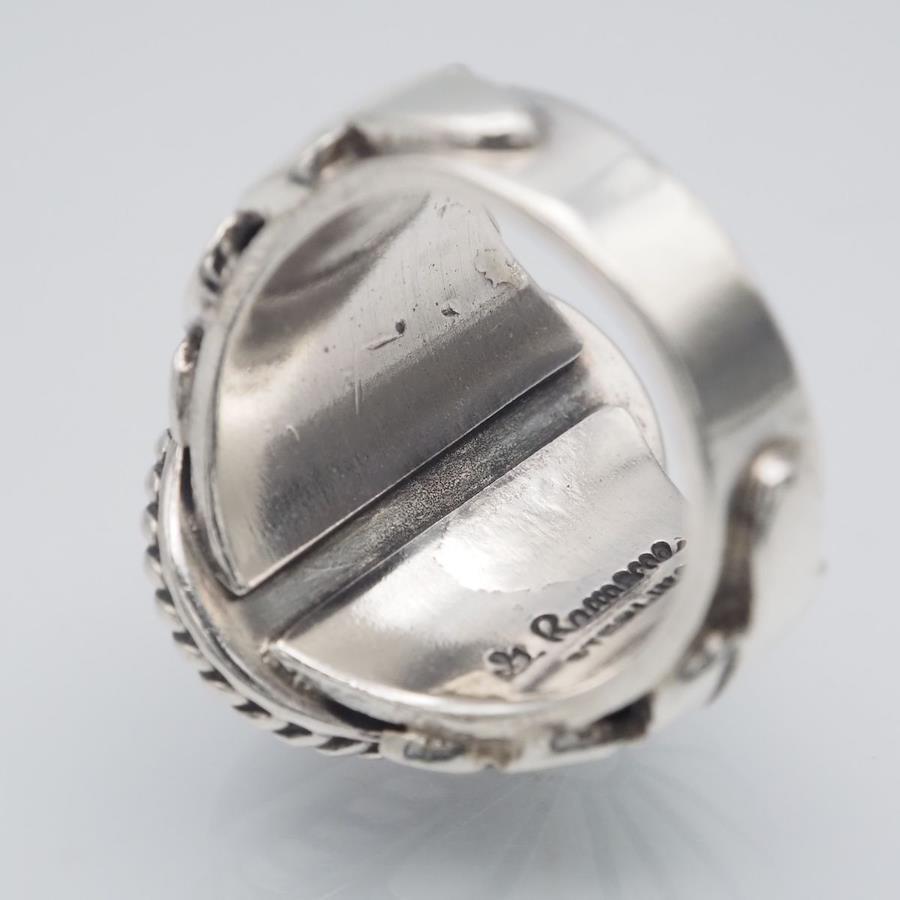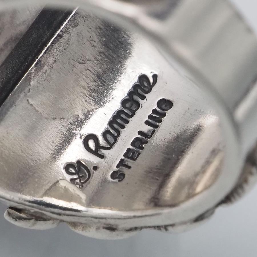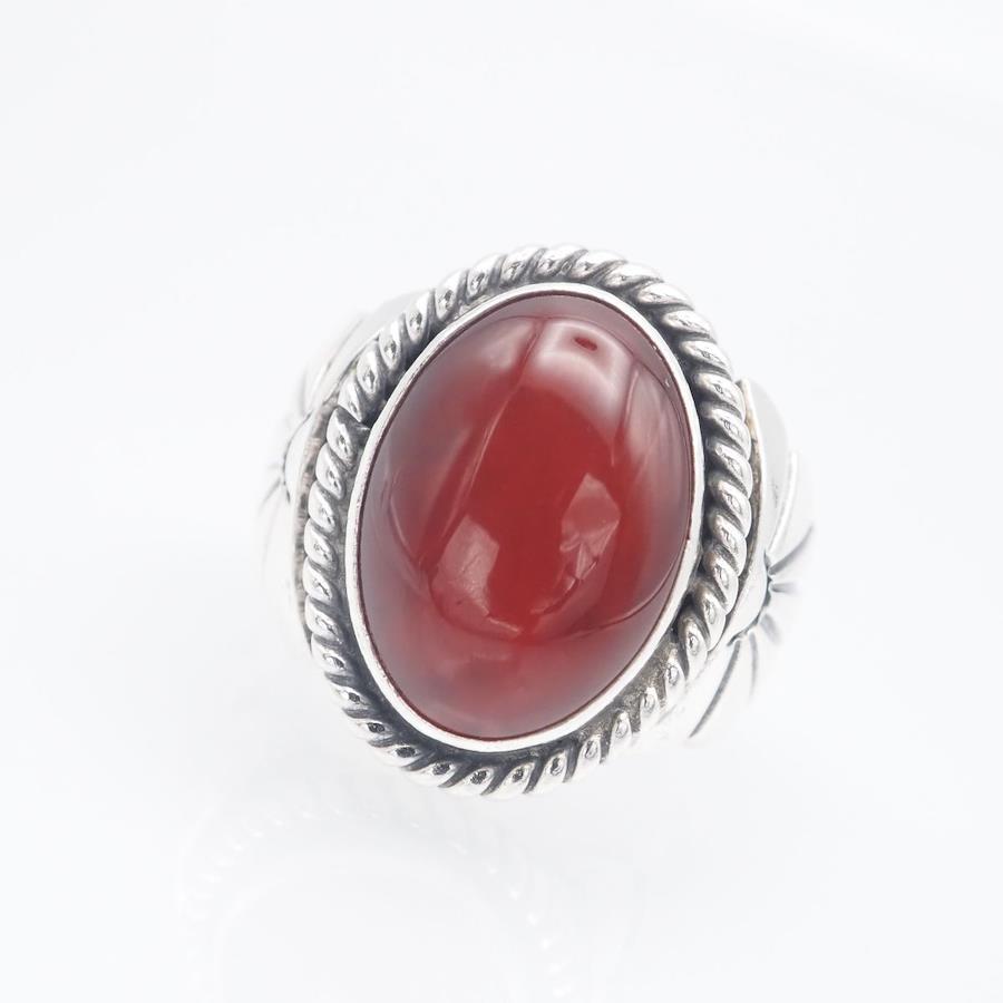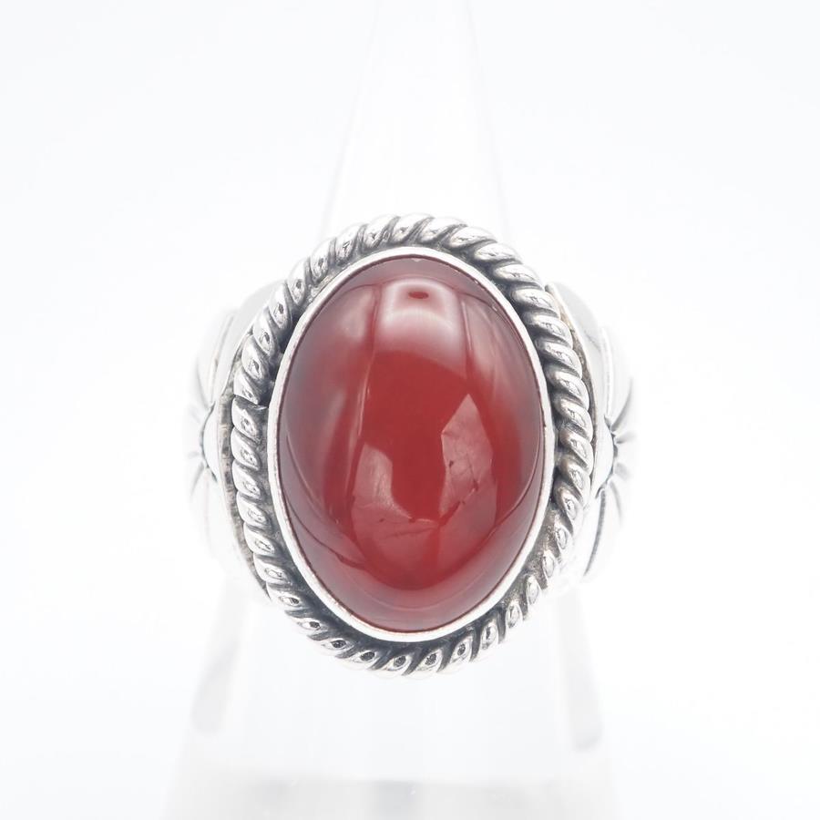 H977 Navajo Geneva Ramone Sterling Stamped Ring, Red Agate Design, Silver, Size 11