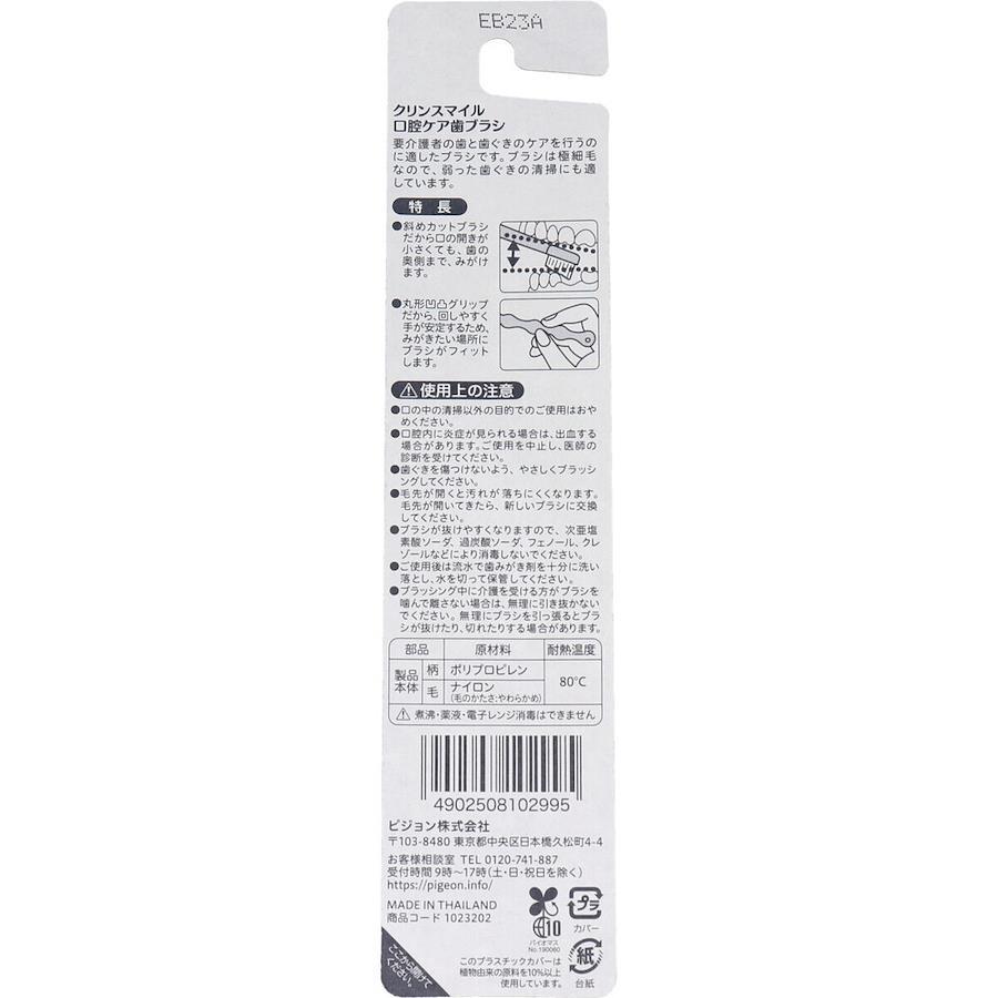【注意】・口の中の清掃以外の目的でご使用はおやめ下さい。・口腔内に炎症が見られる場合は、出血する場合があります。ご使用を中止し、医師の診断を受けて下さい。・歯ぐきを傷つけないよう、やさしくブラッシングして下さい。・毛先が開くと汚れが落ちにくくなります。毛先が開いてきたら新しいブラシに交換して下さい。・ブラシが抜けやすくなりますので、次亜塩素酸ソーダ、過炭酸ソーダ、フェノール、クレゾール等により消毒しないで下さい。・ご使用後は流水で歯みがき剤を十分に洗い落とし、水を切って保管して下さい。・ブラッシング中に介護を受ける方が歯ブラシを噛んで話さない場合は、無理に引き抜かないで下さい。無理に歯ブラシを引っ張るとブラシが抜けたり、切れたりする場合があります。※煮沸・薬液・電子レンジ消毒はできません。