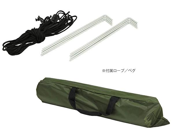 ■サイズ:約W120×D200×H110cm(本体組立時)■重量:約1.4kg■主素材:ポリエステル・PE(本体)グラスファイバー(ポール)■付属品:屋根シート×1枚ポール×2本ペグ×8本ロープ×4本収納バッグ×1個