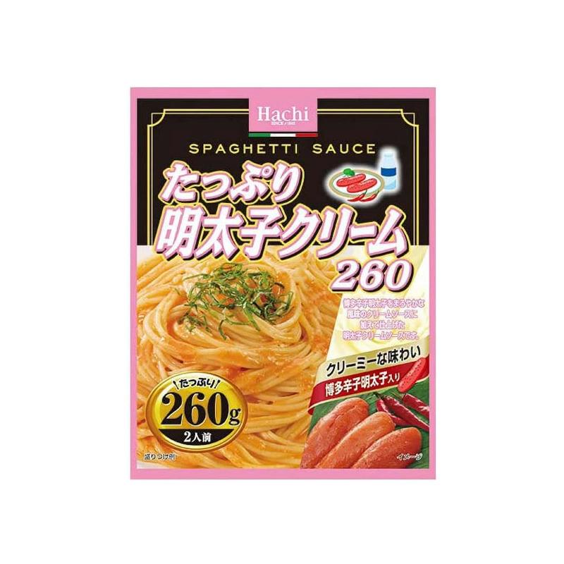 博多辛子明太子を、まろやかな風味のクリームソースに加えて仕上げた明太子クリームソース(ハチ食品)です。パスタ以外にもグラタン、リゾット、ハンバーグ煮込み、チキン煮込み等いろいろな料理にも簡単に使えます。非常食としても便利です。