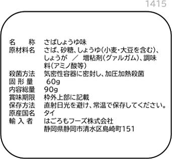 原材料:さば、砂糖、しょうゆ(小麦・大豆を含む)、しょうが / 増粘剤(グァルガム)、調味料(アミノ酸等)商品サイズ(高さx奥行x幅):17.4cm×19.6cm×11.6cm内容量:90g(1415)×12個しょうがを加え、さっぱりとしたしょうゆ味に仕上げました。さばには、DHA・EPAが含まれています。【重要】メーカーによる商品リニューアルに伴いパッケージ(内容量も含む)変更が行われた場合、新パッケージでお届け致します事ご了承願います。
