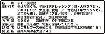 きはだまぐろ、半固体状ドレッシング(卵・大豆を含む)、デキストリン、大豆油、食塩 / 増粘剤(キサンタンガム、加工でん粉)、調味料(アミノ酸等)、香辛料抽出物