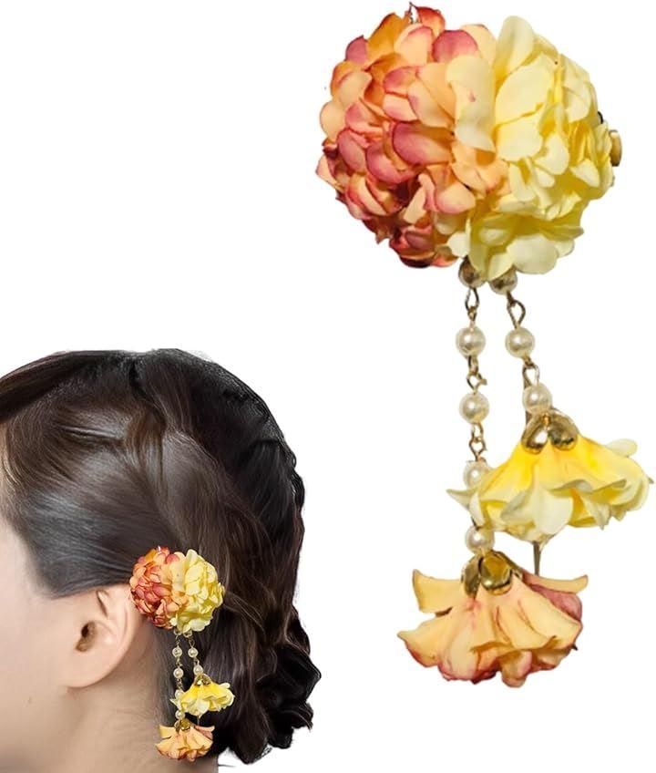 小ぶりな花モチーフの髪飾りは、浴衣にぴったりな上品で可愛らしい和装小物です。