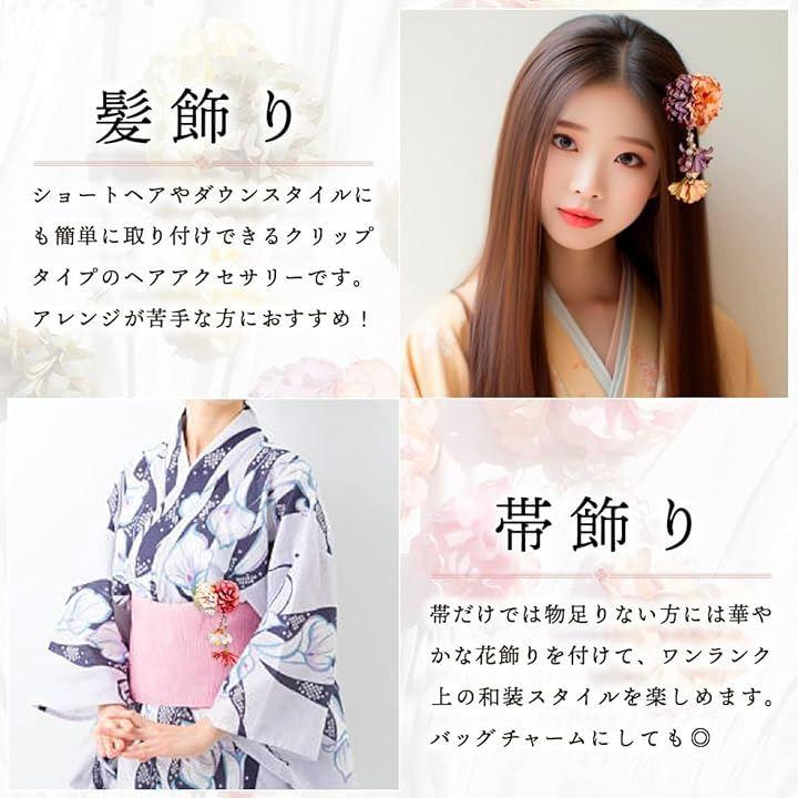 簡単に髪に留めるだけで、和装スタイルにワンポイントのお花が華やかさを添えます。