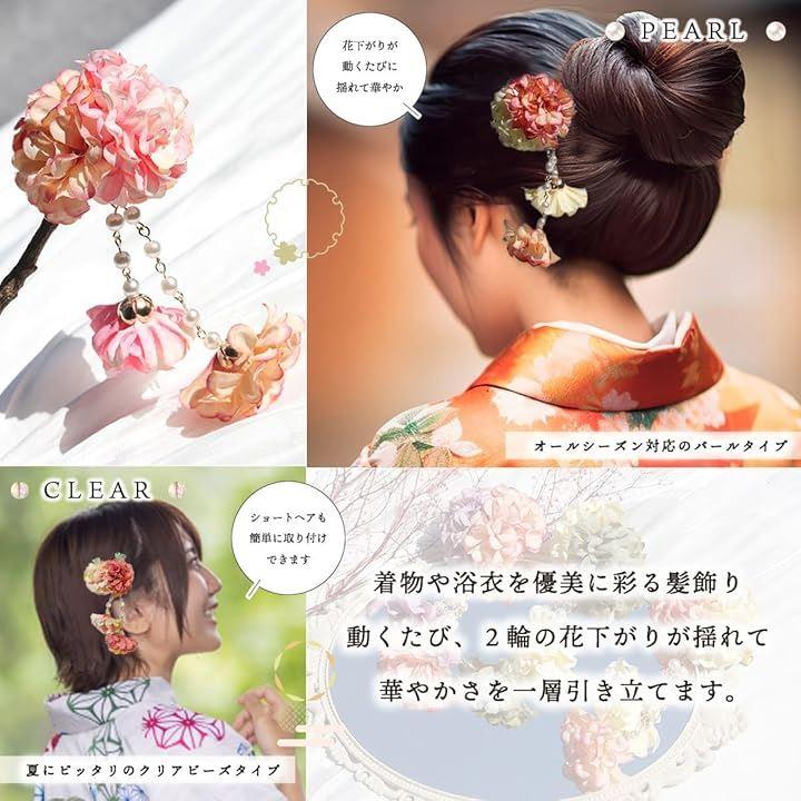 「花下がりが可愛い髪飾り」着物や浴衣のお色に併せたり、お好きな色で楽しんだり、髪飾りを付けてみませんか?小ぶりでさりげなく、花下がりが優しく揺れて上品な可愛さがあります。