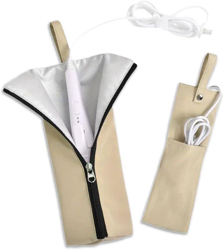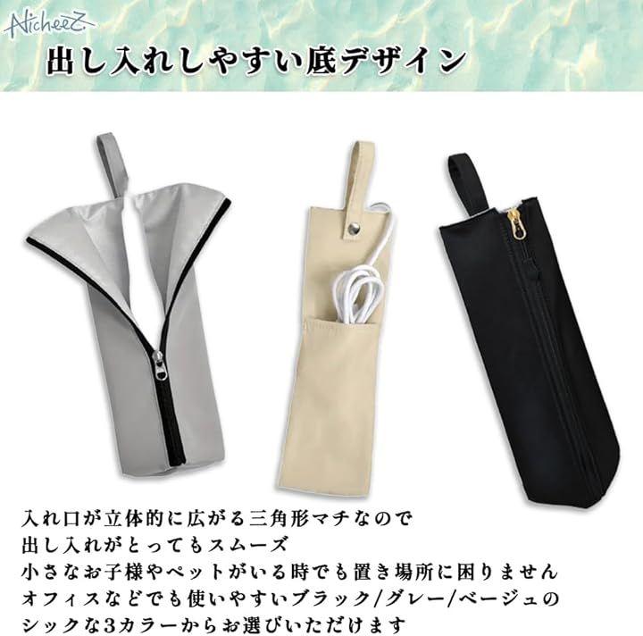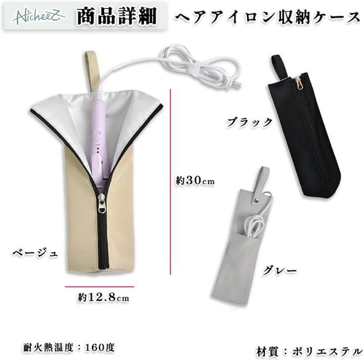 「商品内容」ヘアコテ収納ケース 材質:ポリエステル カラー:ブラック/グレー/ベージュ サイズ:縦/約30cm 横/約12.8cm 重量:約92g 耐火熱温度:160度
