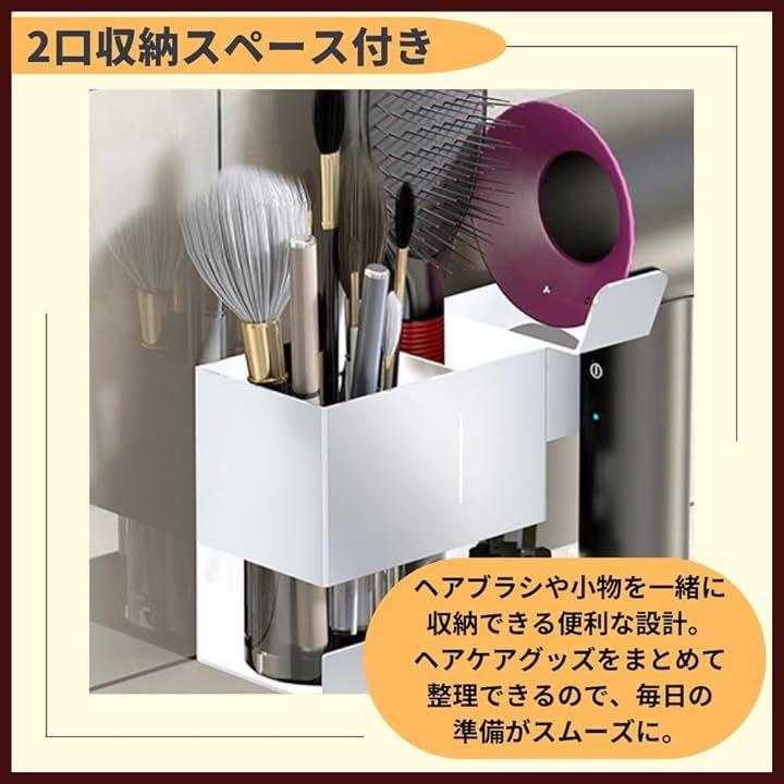 「2口収納スペース付き」ヘアブラシや小物を一緒に収納できる便利な設計。ヘアケアグッズをまとめて整理できるので、毎日の準備がスムーズに。